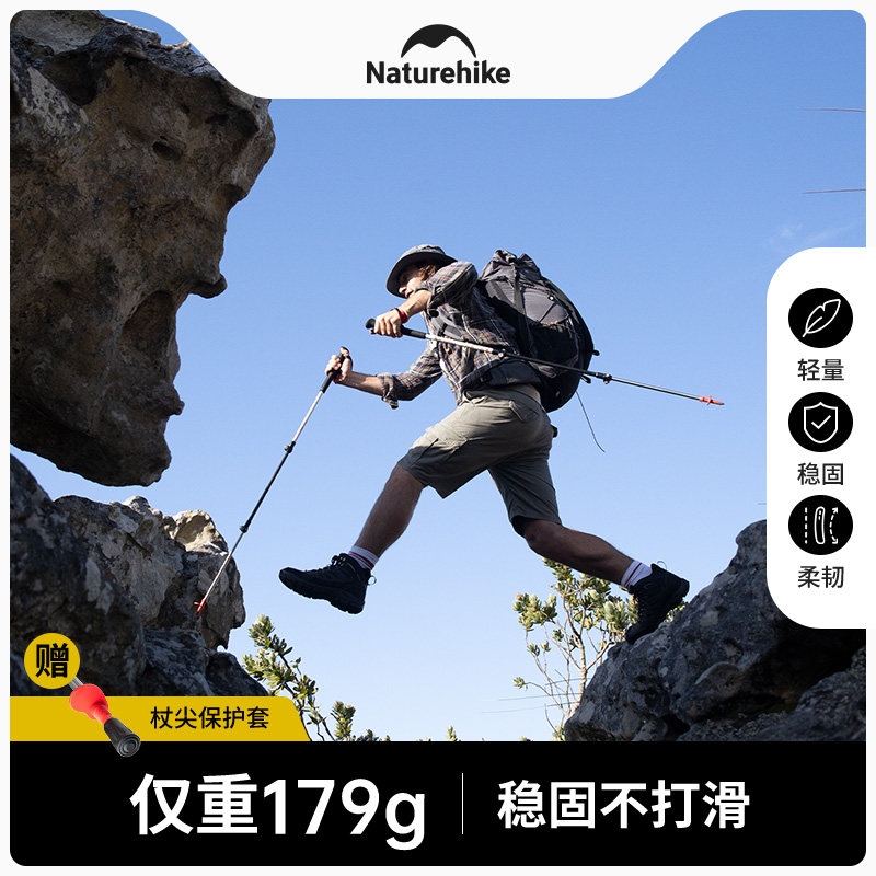 📚 naturehike挪客登山杖碳素超轻伸缩碳纤维徒步手杖户外装备初雪UL