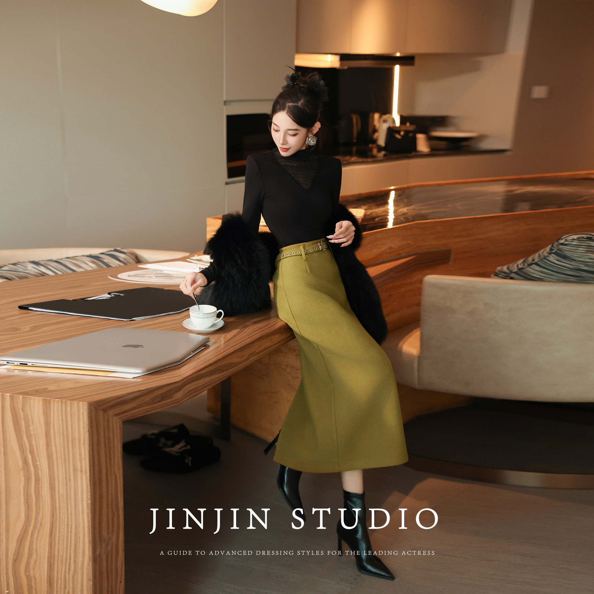 📚 MD进进原创【落日时分】2025冬季显瘦时尚修身直筒裙设计感半身裙