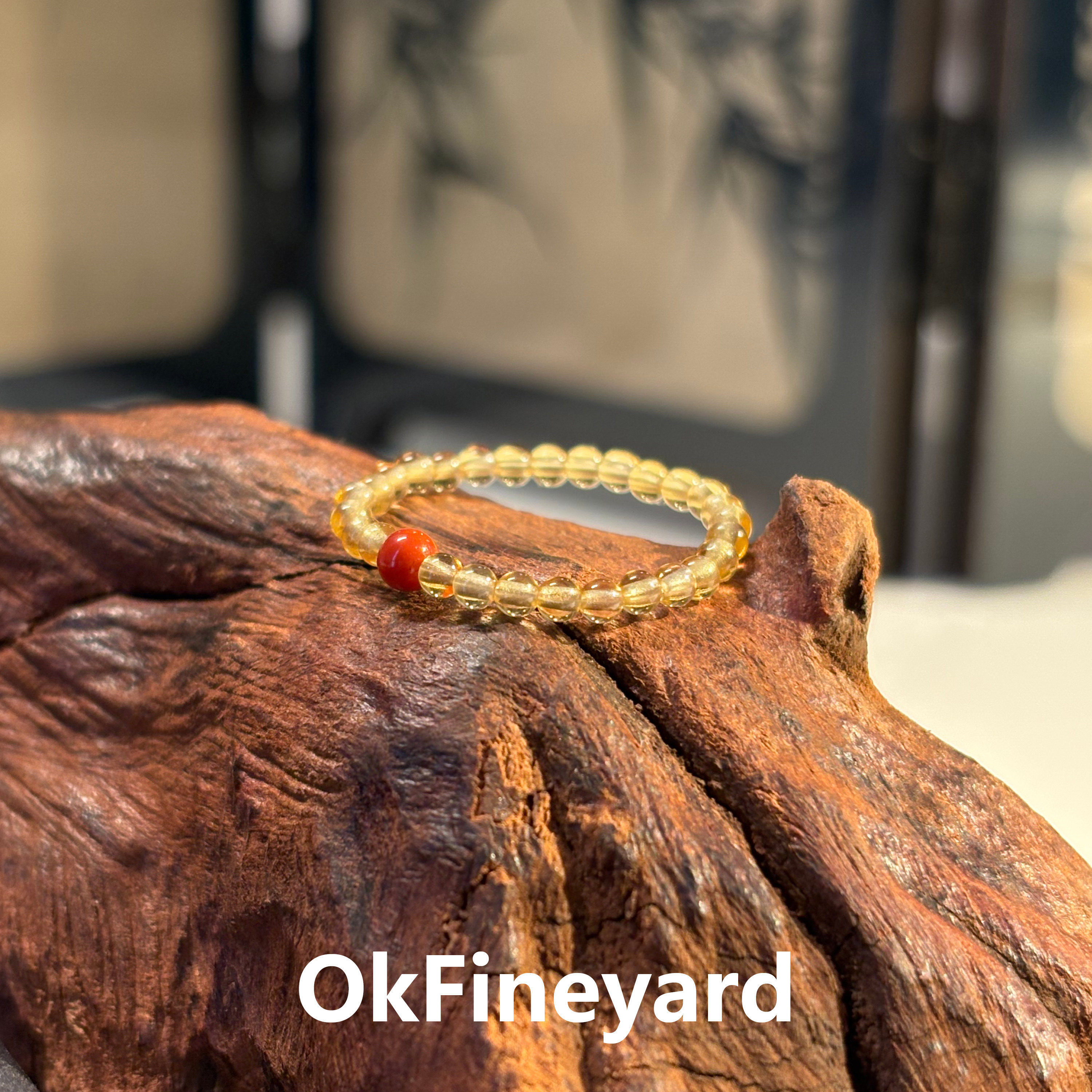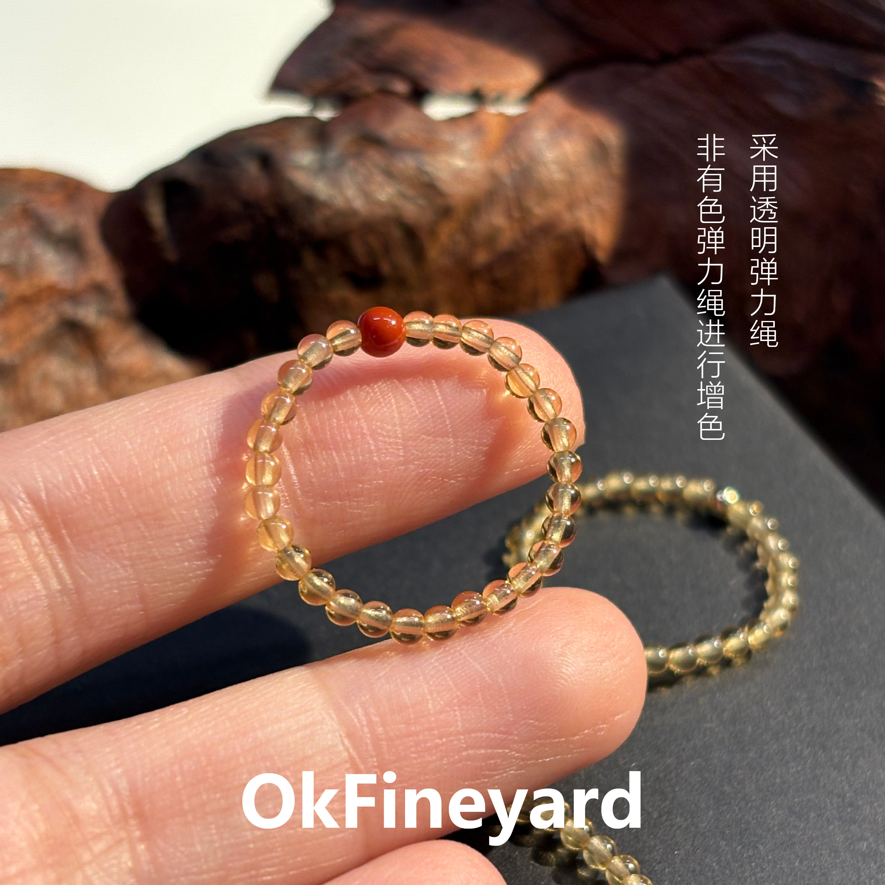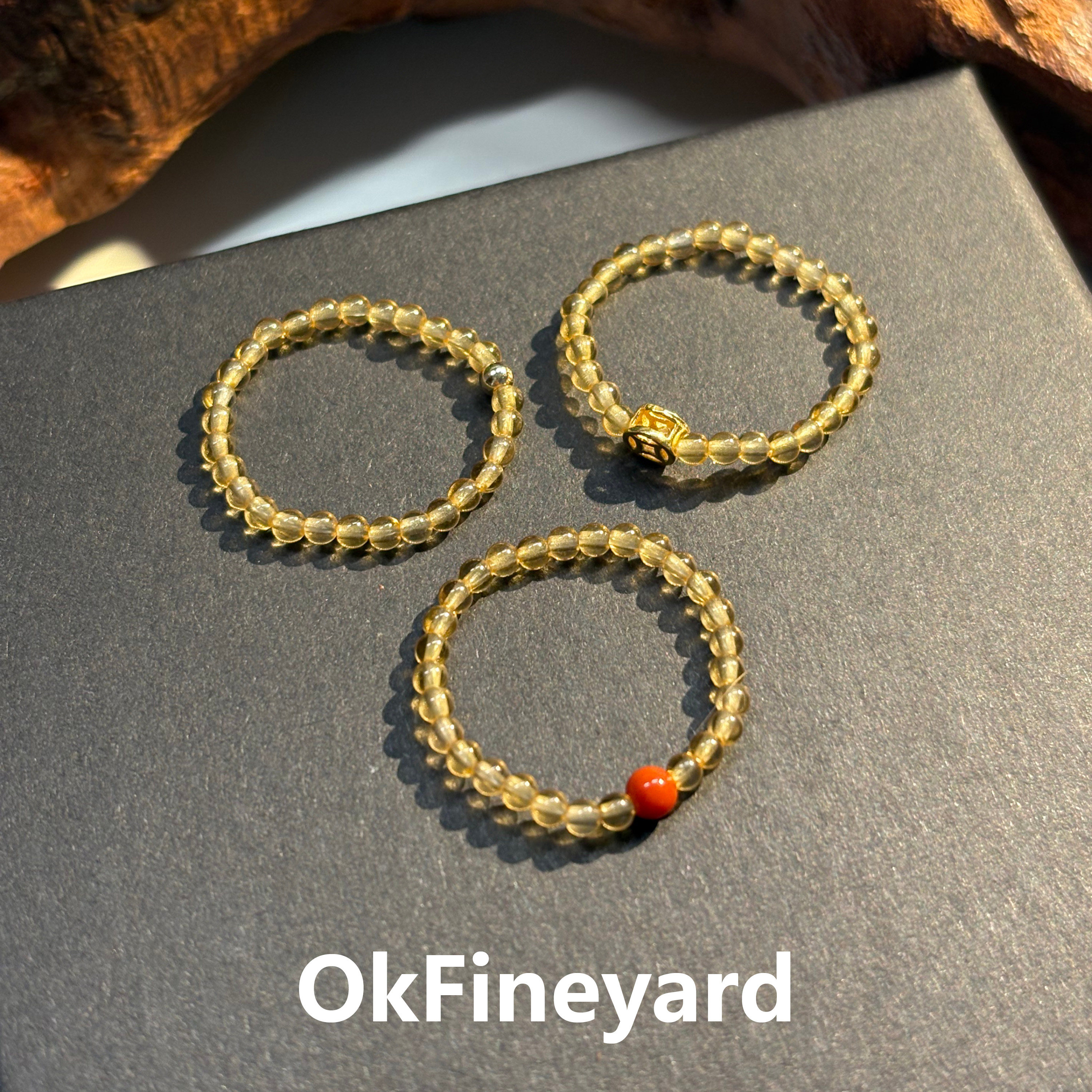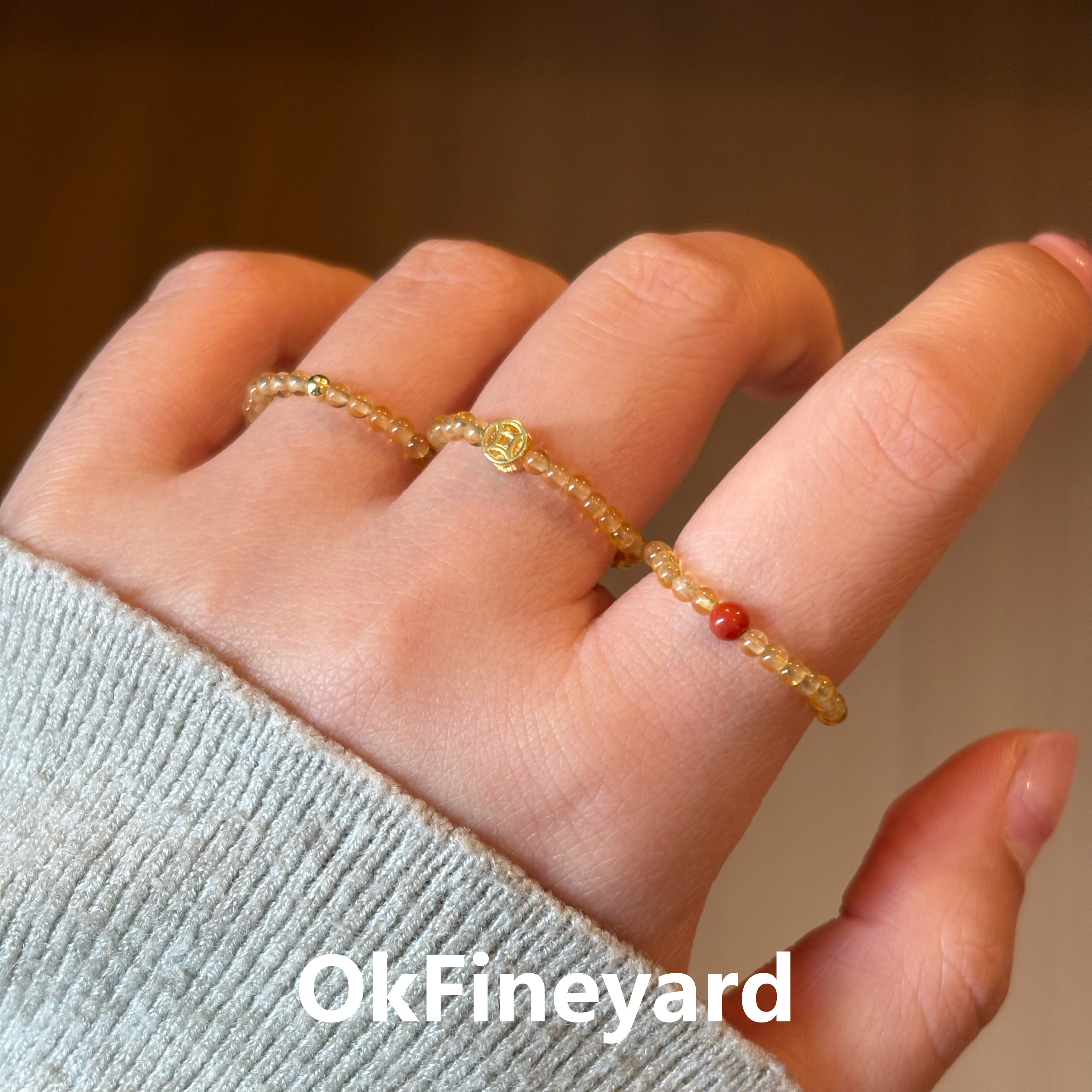 📚 OkFineyard天然巴西黄水晶招财戒指女素圈串珠尾戒小众食指环旺财