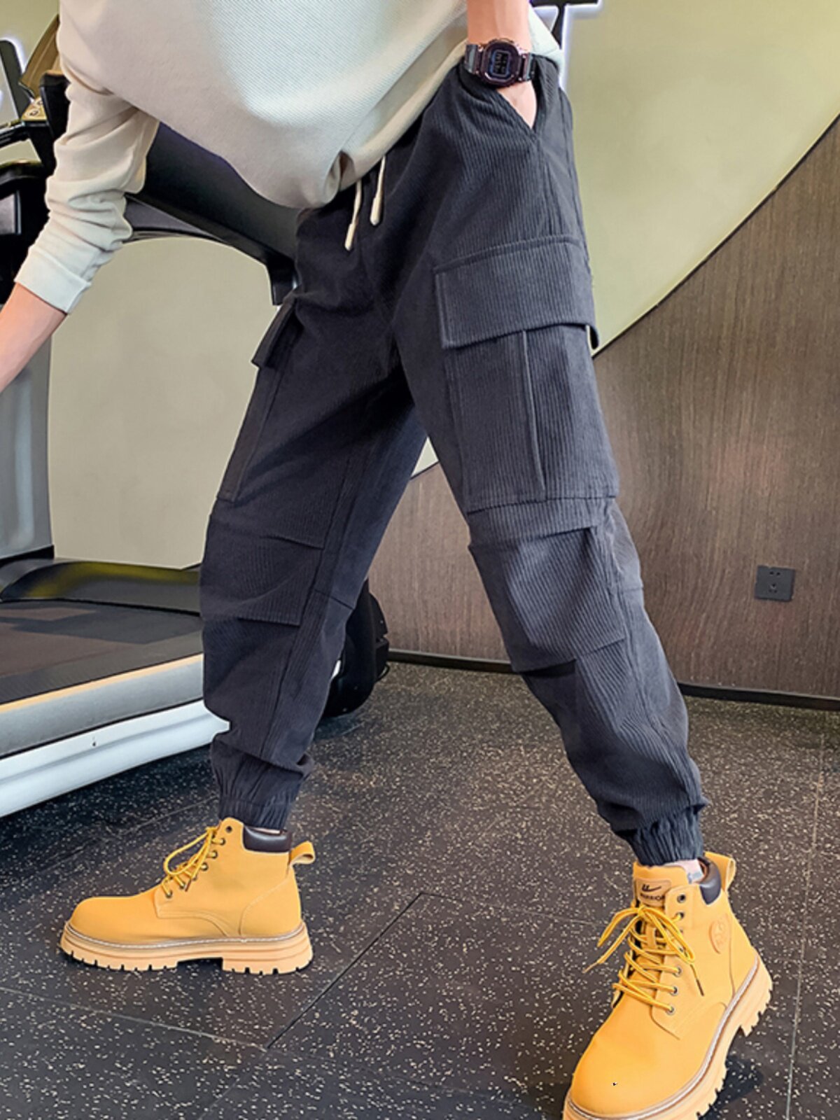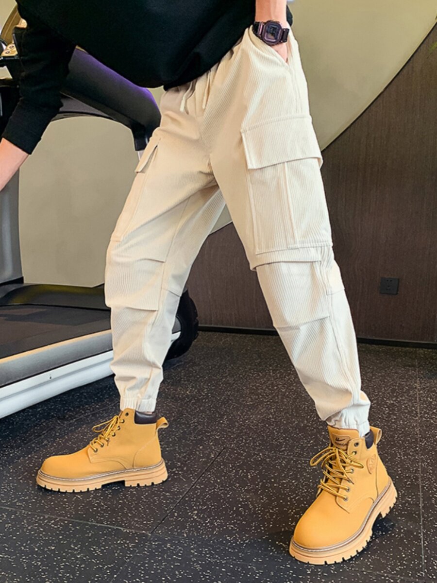 📚 工装卫裤男士秋冬季新款加绒加厚休闲裤潮流高端小脚束脚哈伦裤男