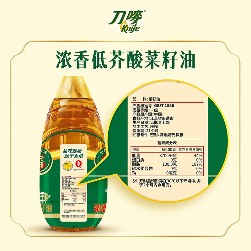 📚 刀唛Knife浓香低芥酸菜籽油4.68L非转基因物理压榨小榨食用植物油