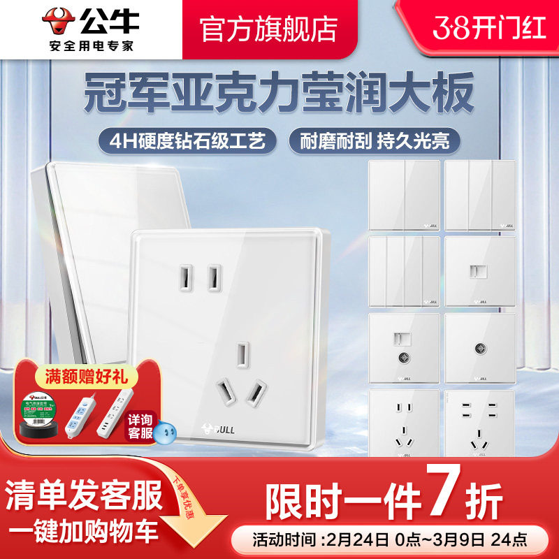 📚 公牛插座官方旗舰店官网开关插座带usb五孔插座亚克力面板G62白