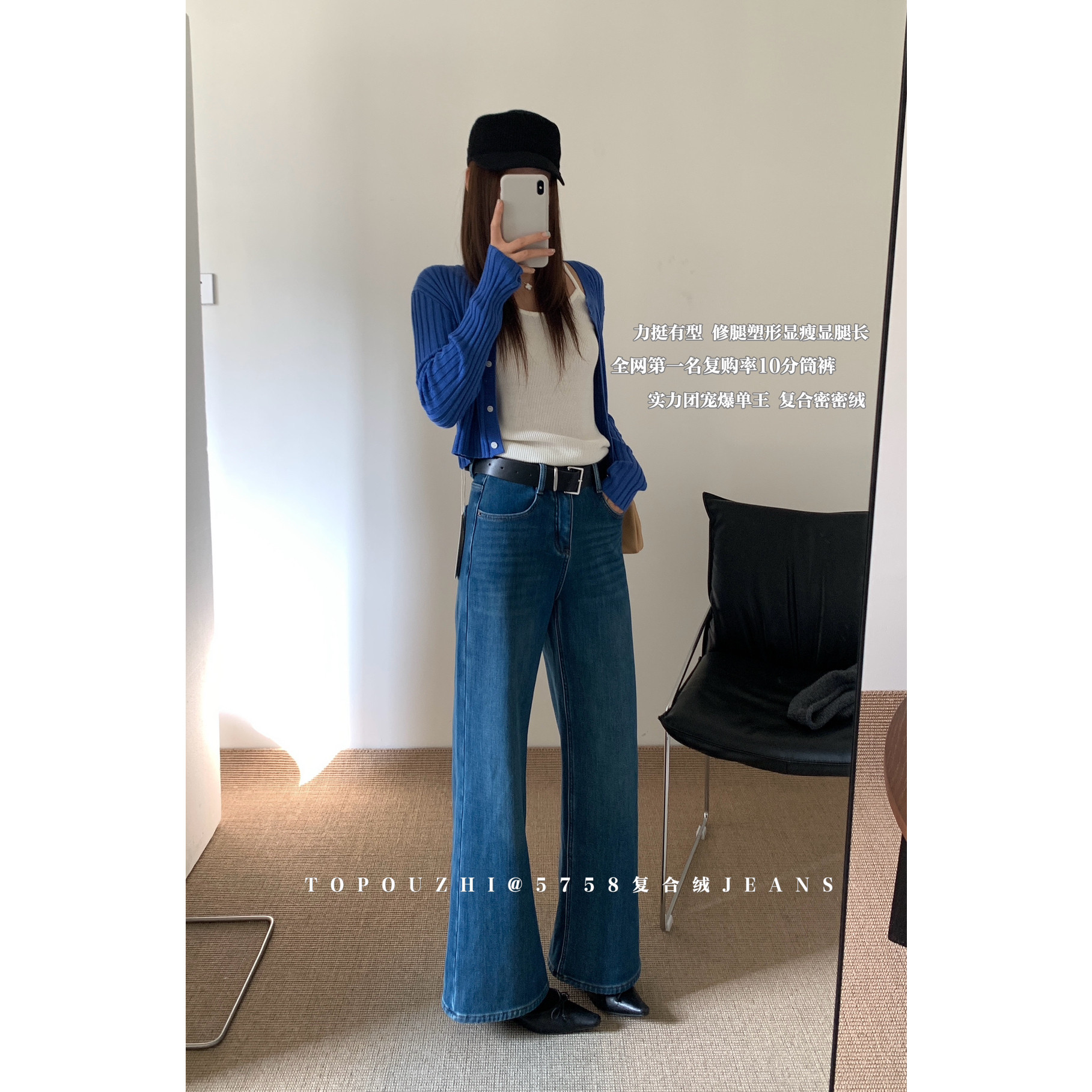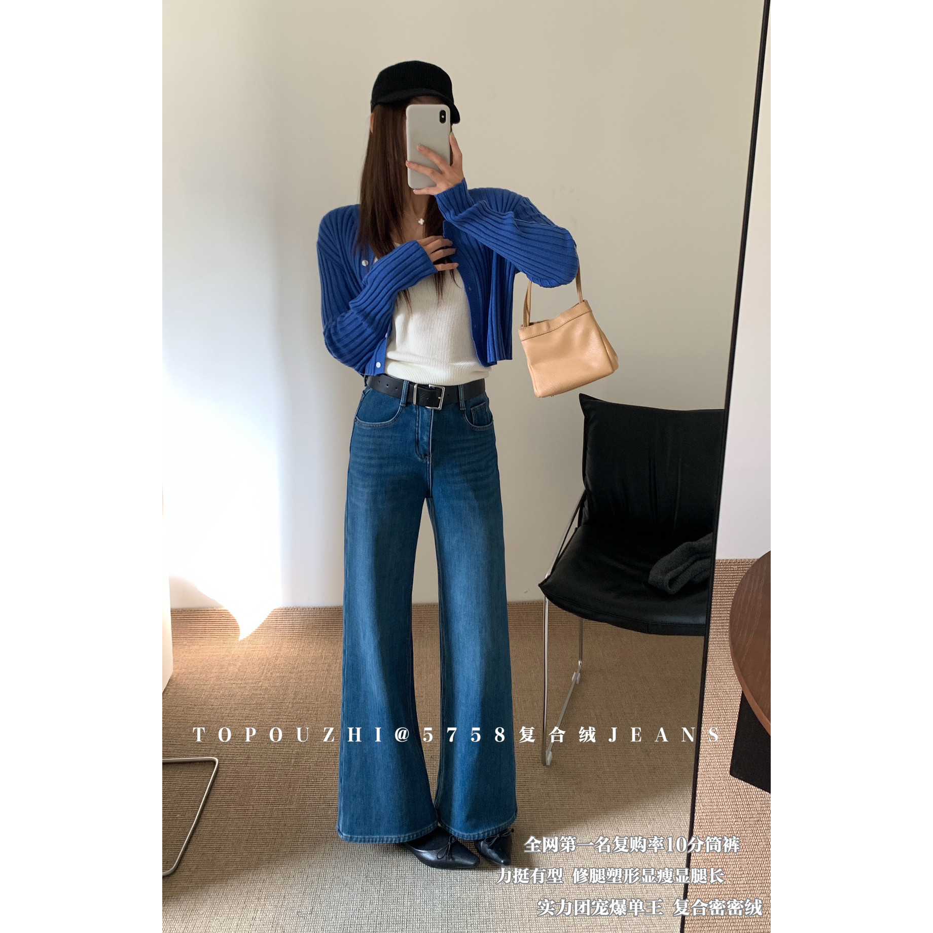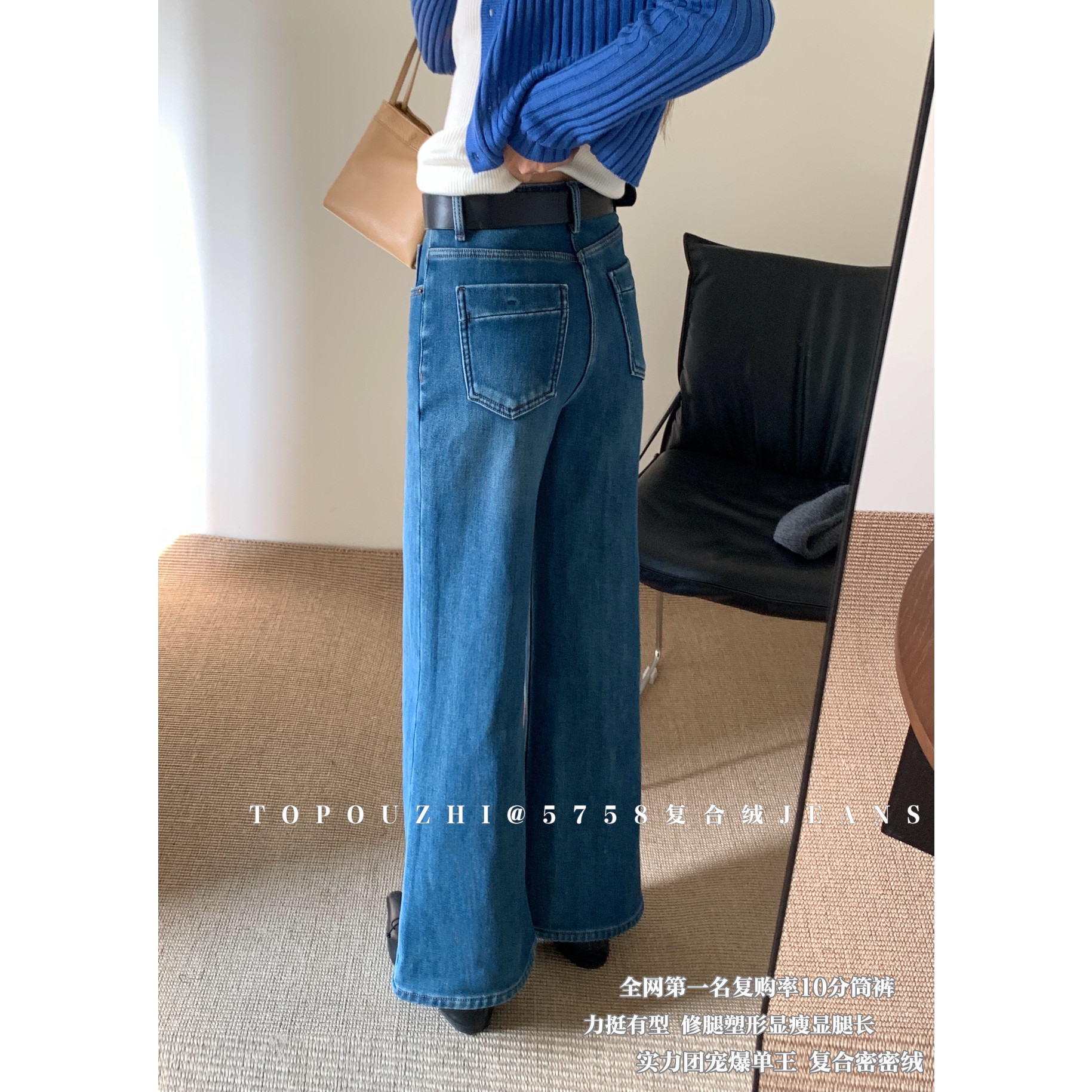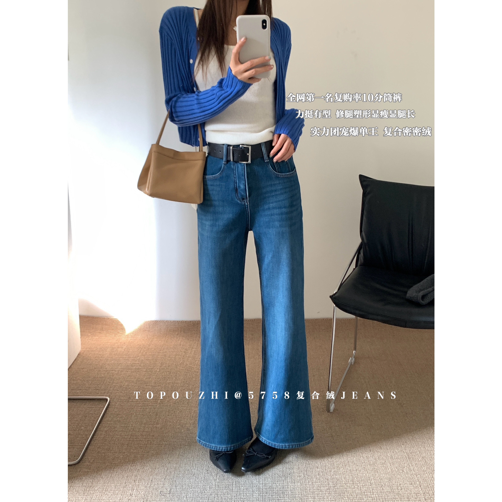 📚 TOP欧制-5758冬季加绒微喇牛仔裤配腰带高腰显瘦韩版百搭马蹄裤