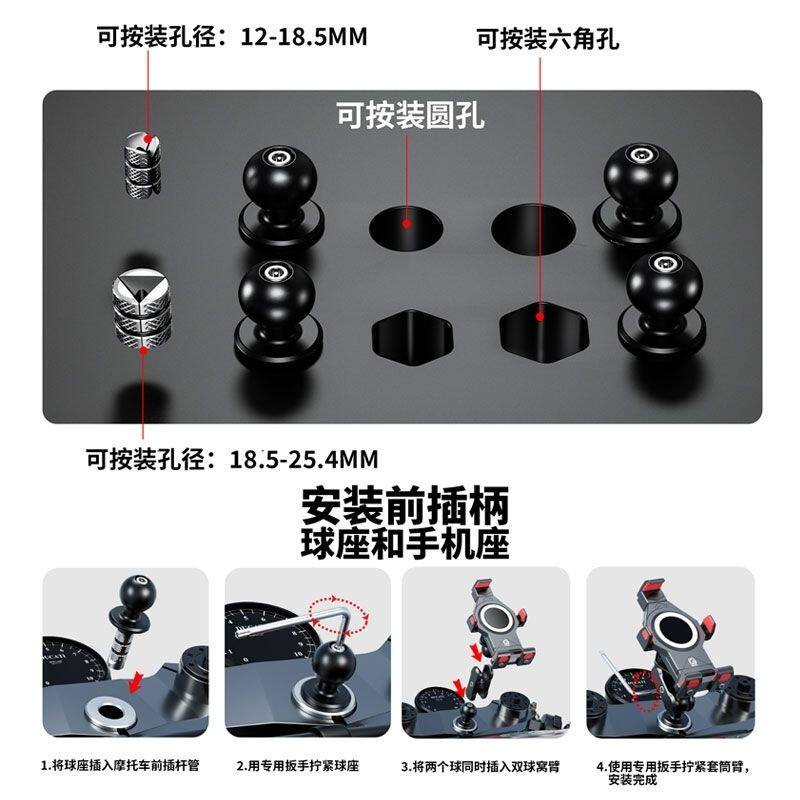 📚 机车铝合金蓬胀球头底座配件机车手机H架配件25mm17mm球头