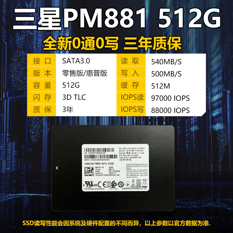 📚 全新三星pm881 128G256G512G 1T 2.5 SATA3笔记本台式固态硬盘SSD