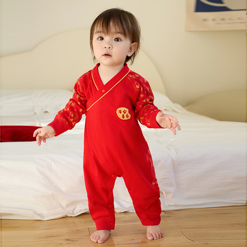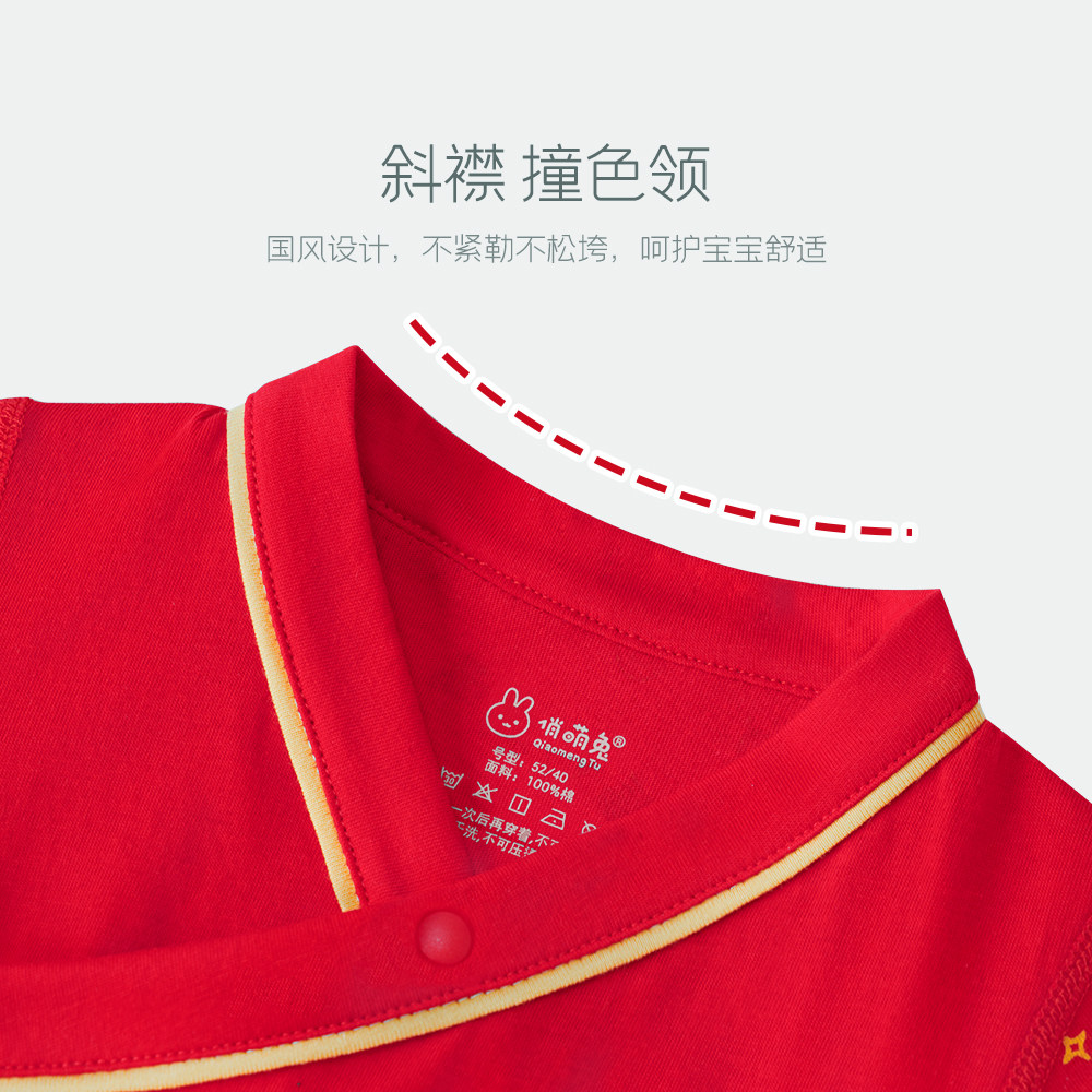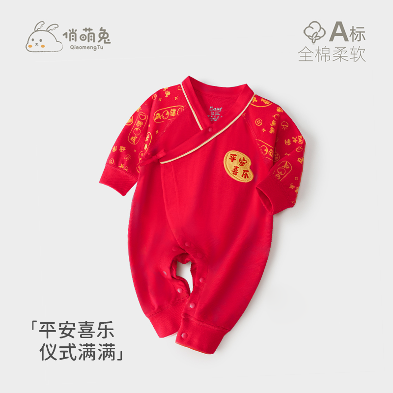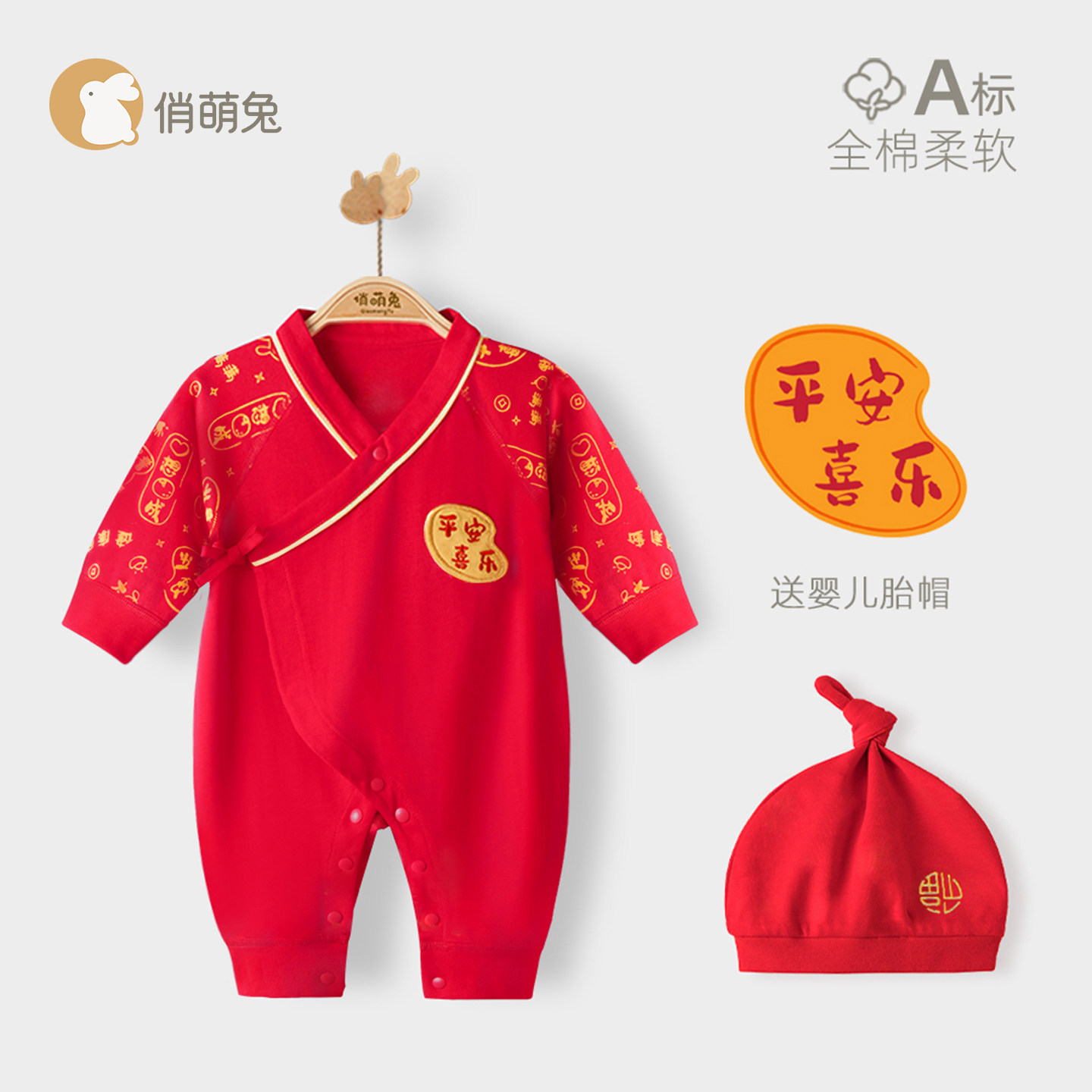 📚 俏萌兔新生儿满月宝宝衣服婴儿红色连体衣男宝纯棉喜庆百天礼服