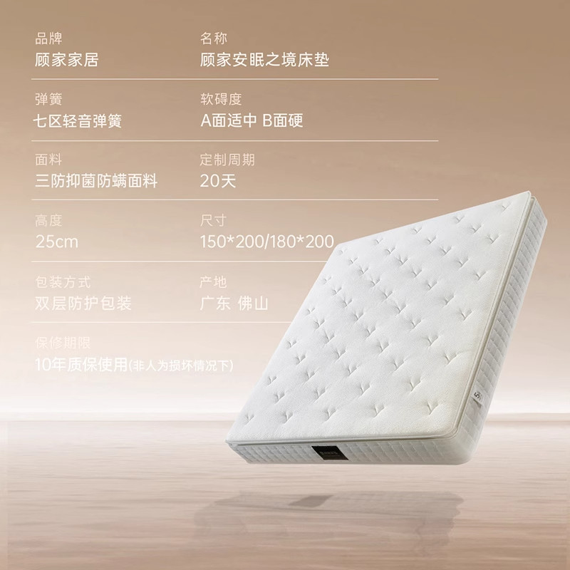 📚 顾家家居实木主卧大床乳胶床垫舒适透气双面软硬两用独立弹簧床垫