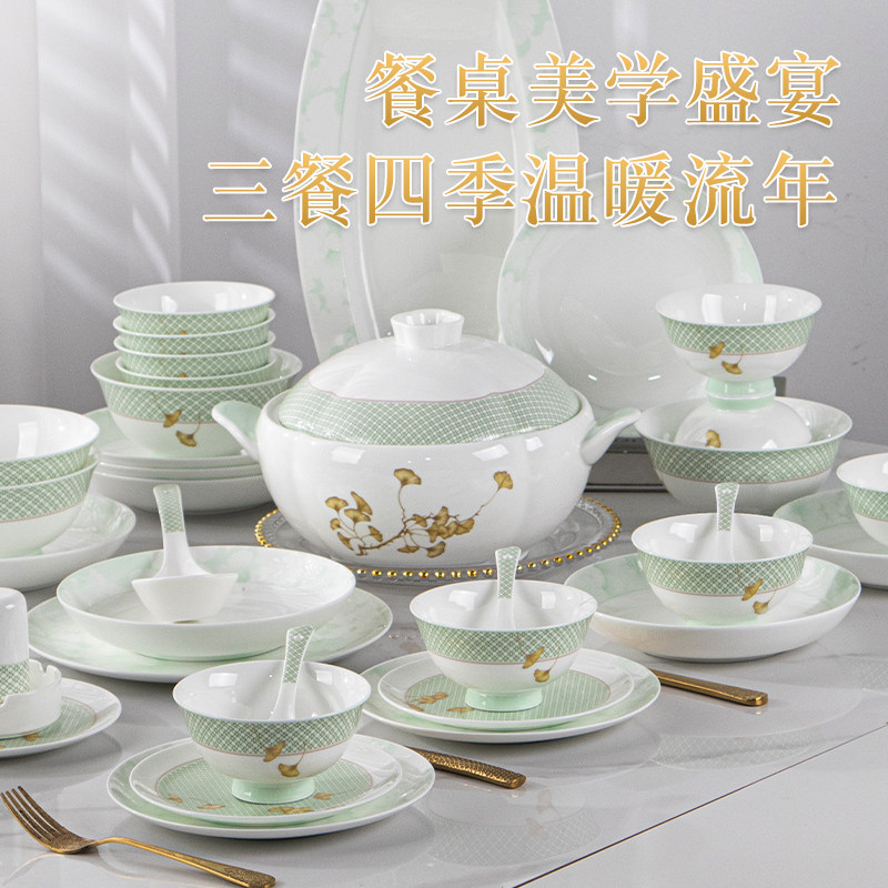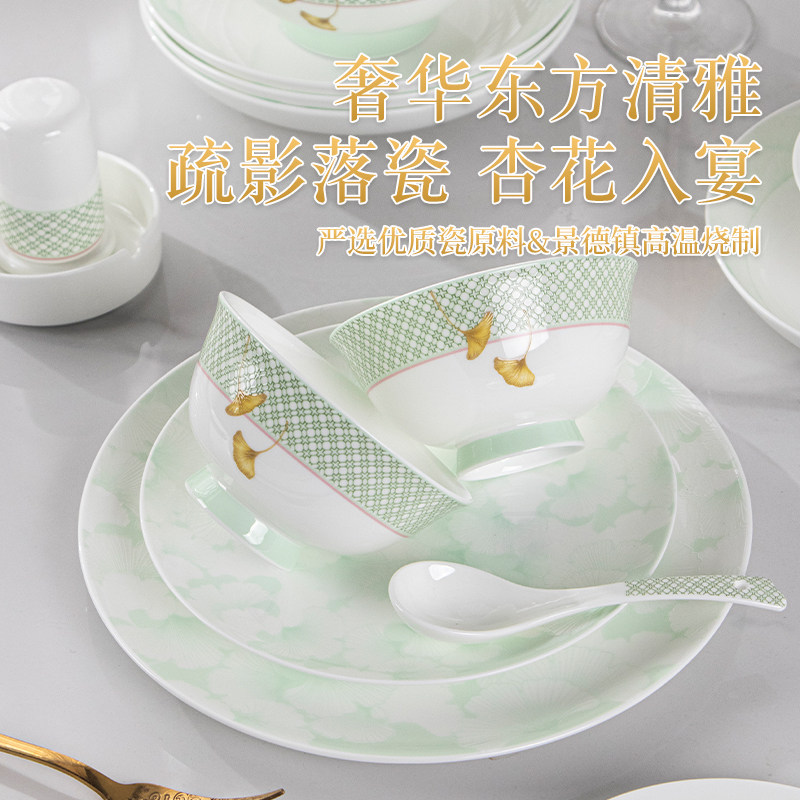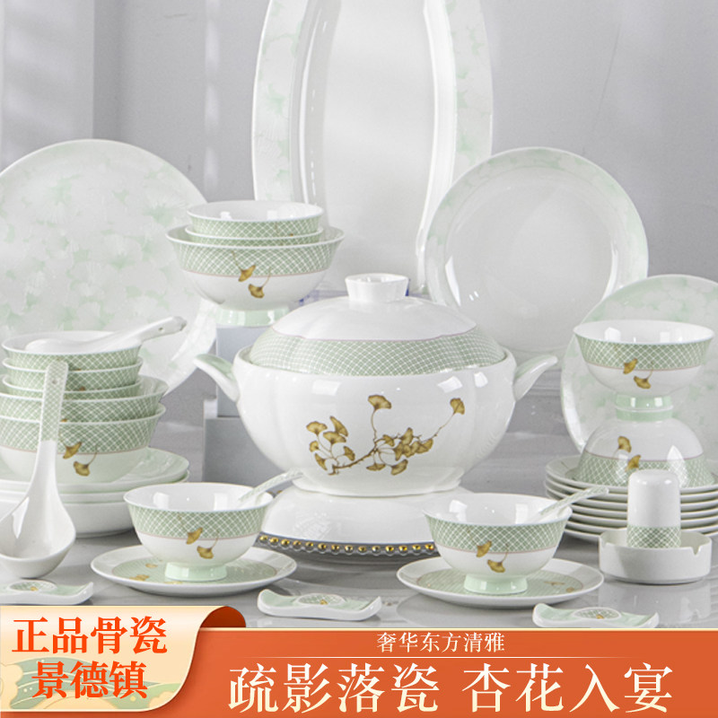 📚 景德镇餐具套装2026新款骨瓷碗碟套装家用中式轻奢餐具杏花疏影