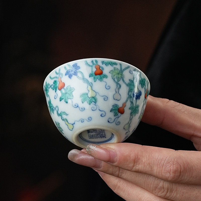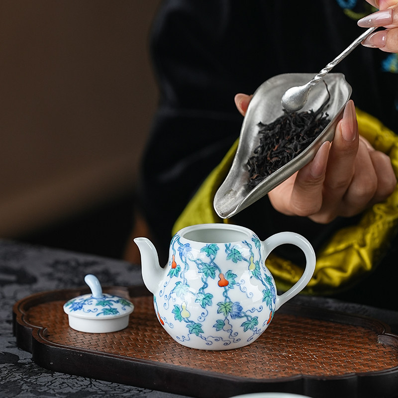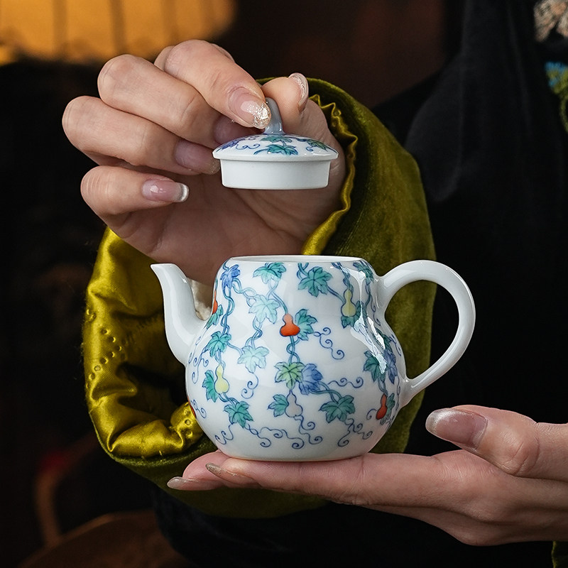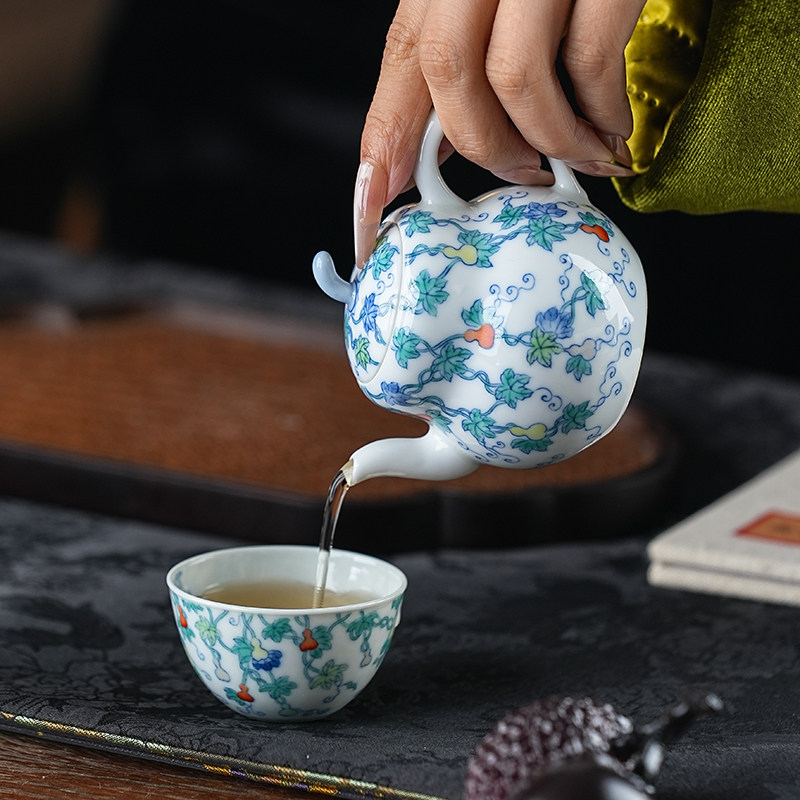 📚 正德山房涂杏花斗彩福禄万代壶套组景德镇手工手绘陶瓷主人壶单杯