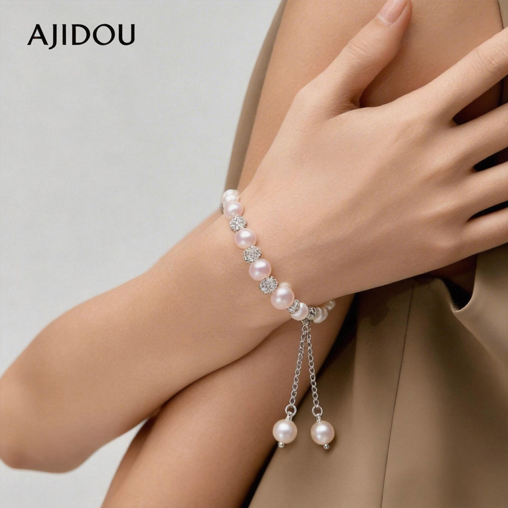 📚 AJIDOU阿吉豆手链女款珍珠手串温婉珍珠抽拉式气质玫瑰紫手环手串