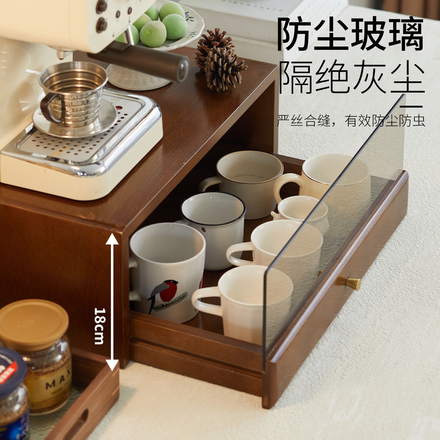 📚 咖啡机置物架桌面增高架抽屉式摆放台马克杯咖啡杯防尘杯架收纳柜