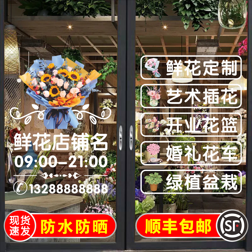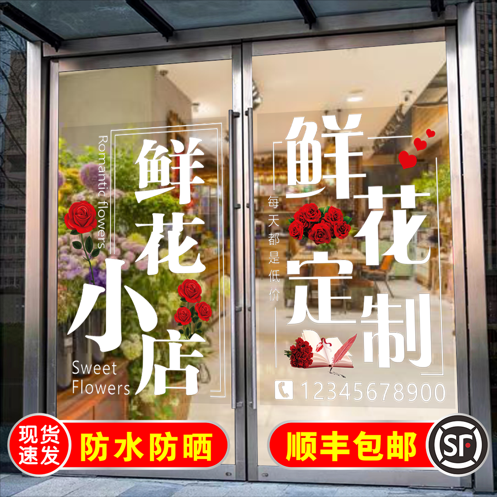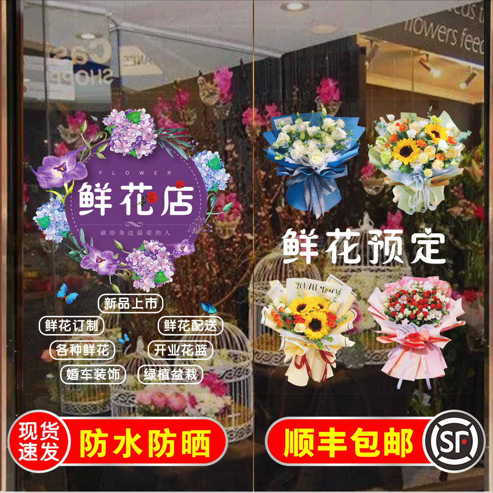 📚 鲜花店玻璃门贴纸花卉店绿植时尚婚庆鲜花类广告装饰防水防晒贴画