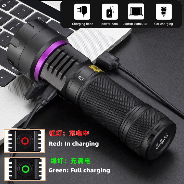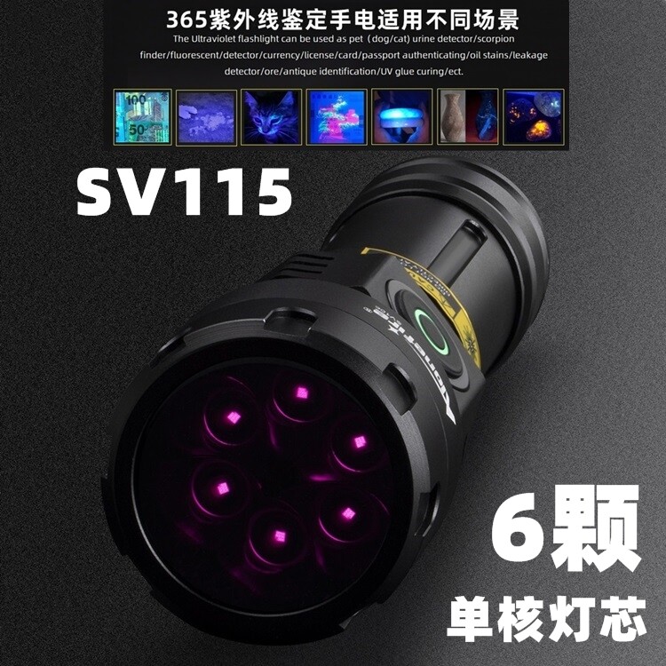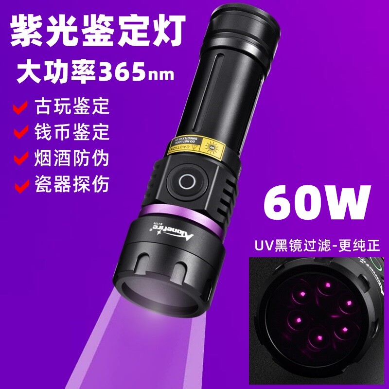 📚 大功率紫光灯365nm紫外线鉴定手电筒探伤油污荧光防伪验钞黑光灯
