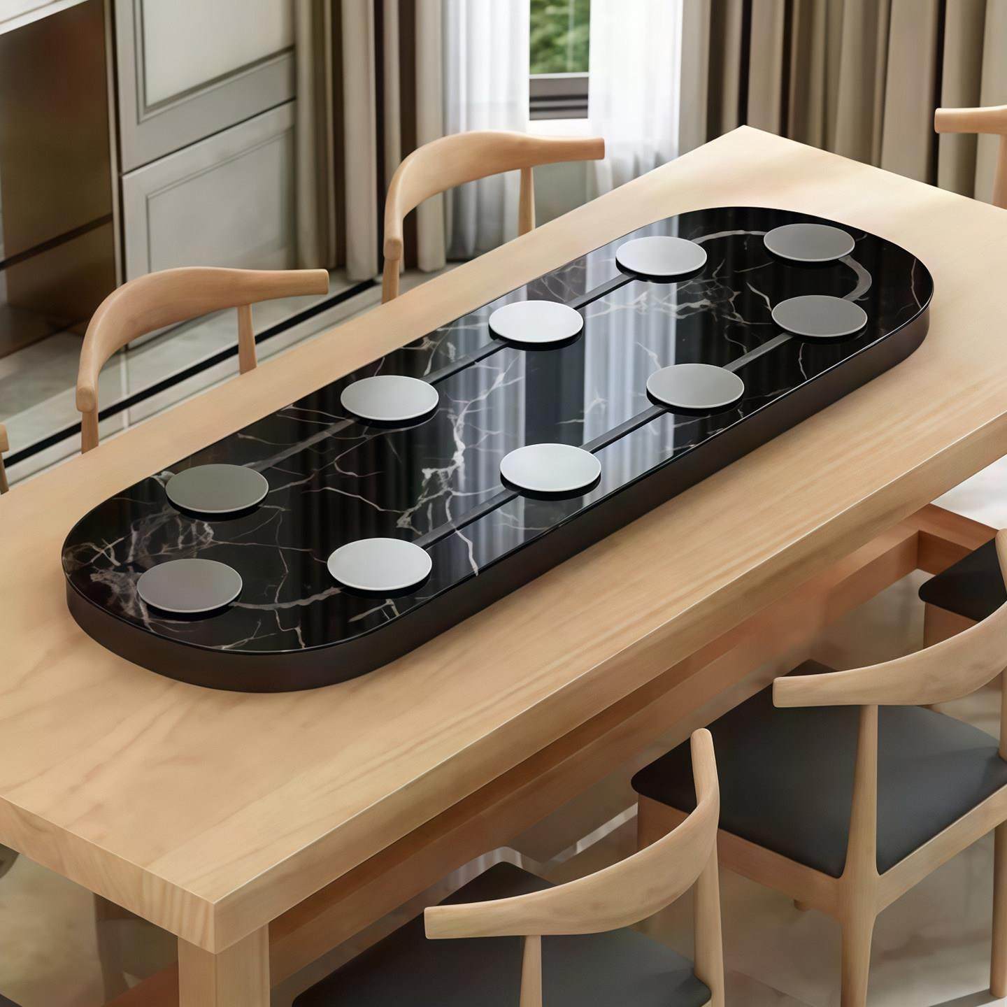 📚 椭圆自动旋转传菜装置长方形餐桌电动转盘家用简约简易长桌小转盘