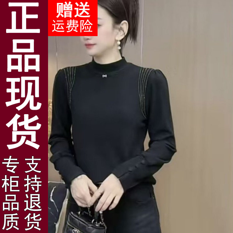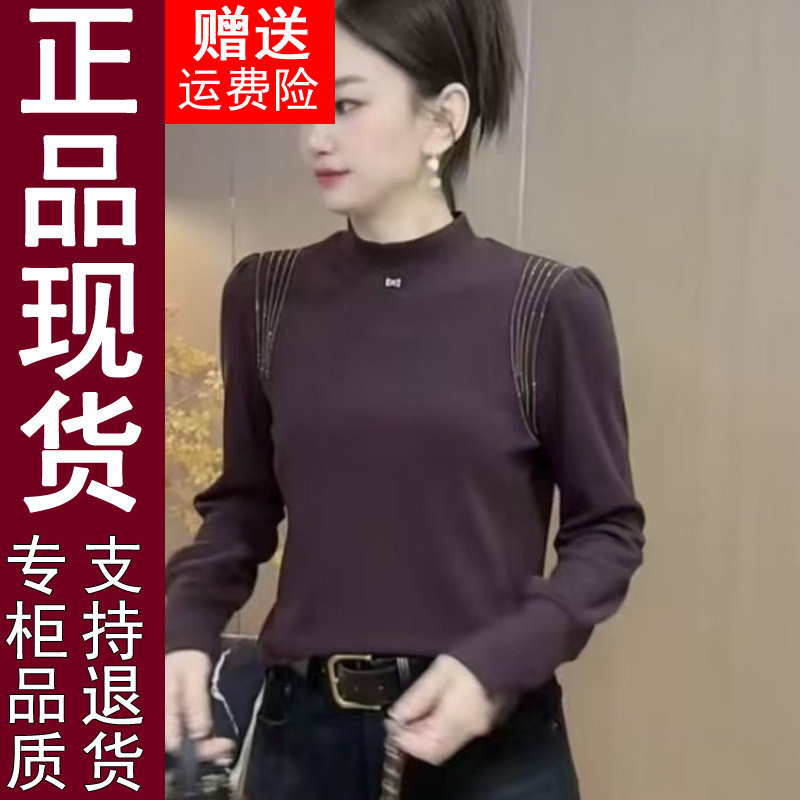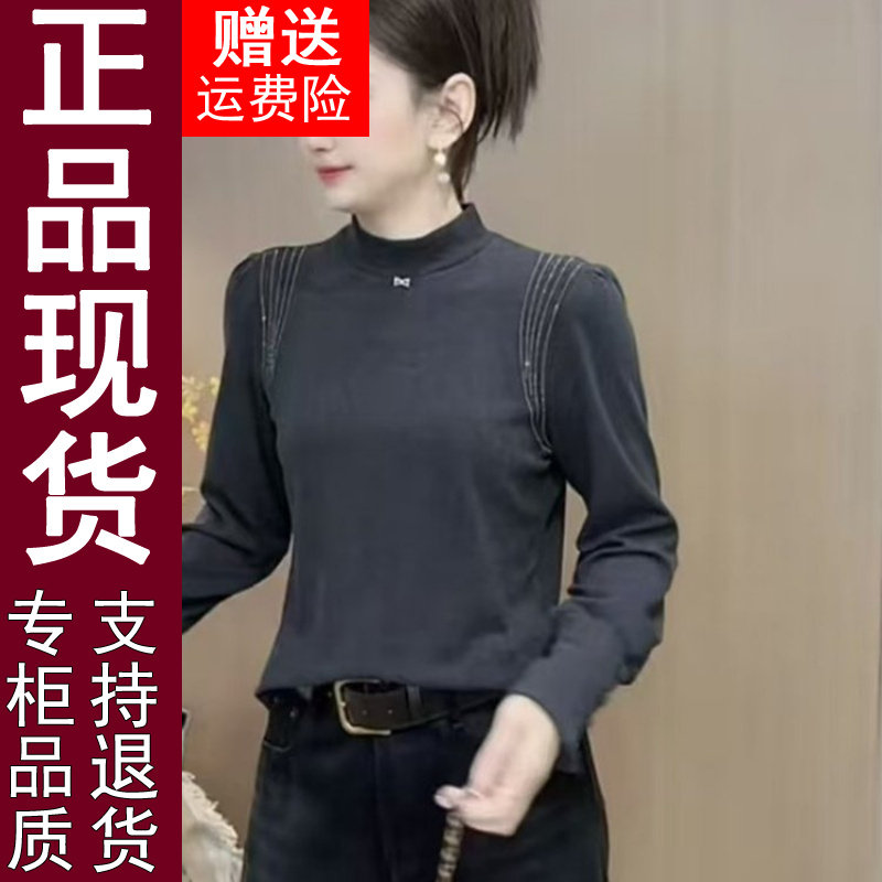 📚 正品原版一体绒时尚泡泡马蹄袖烫钻保暖高领打底衫2025年冬季上衣