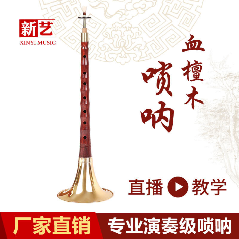 📚 新艺 唢呐乐器全套初学者成人 专业演奏型血檀木唢呐D调 民间喇叭