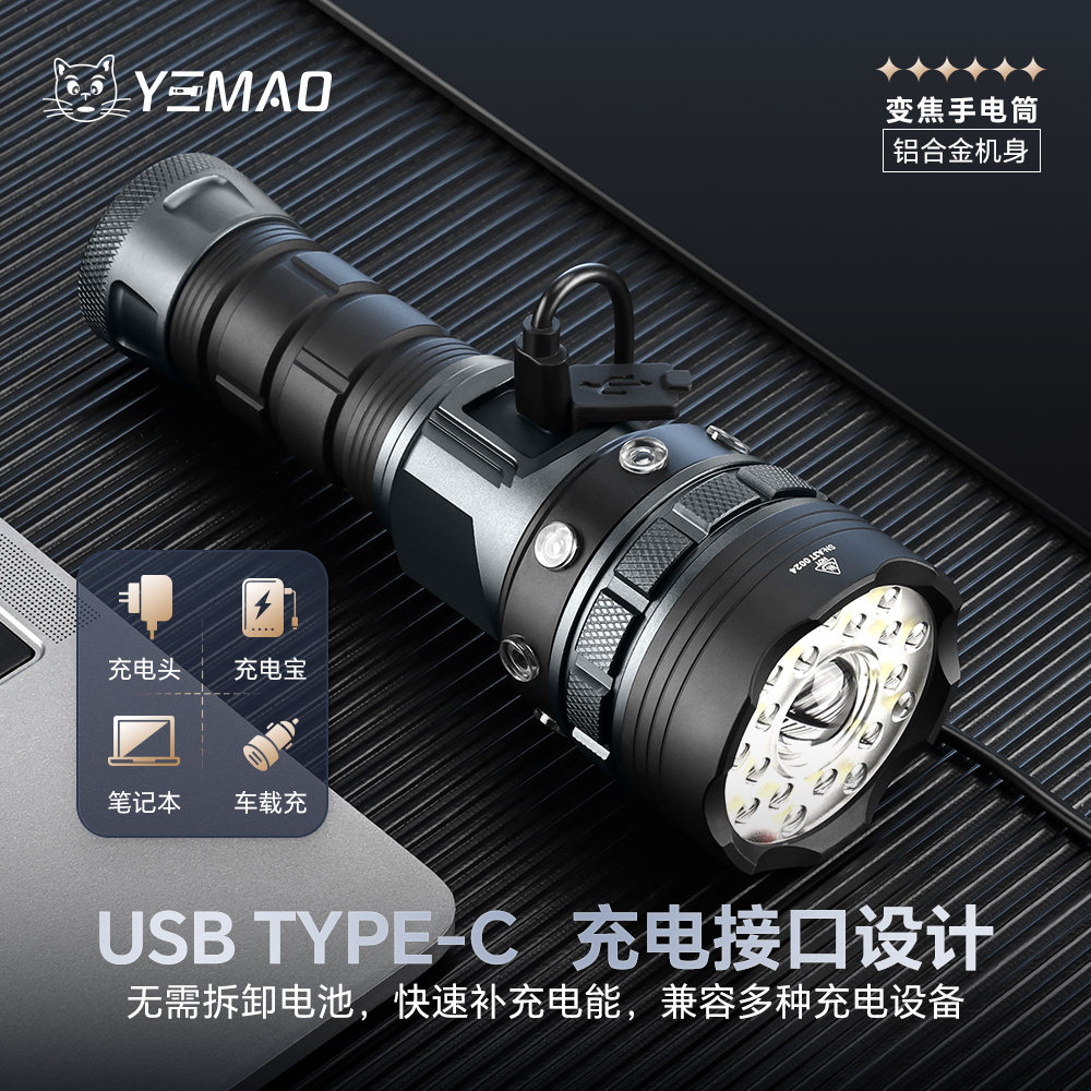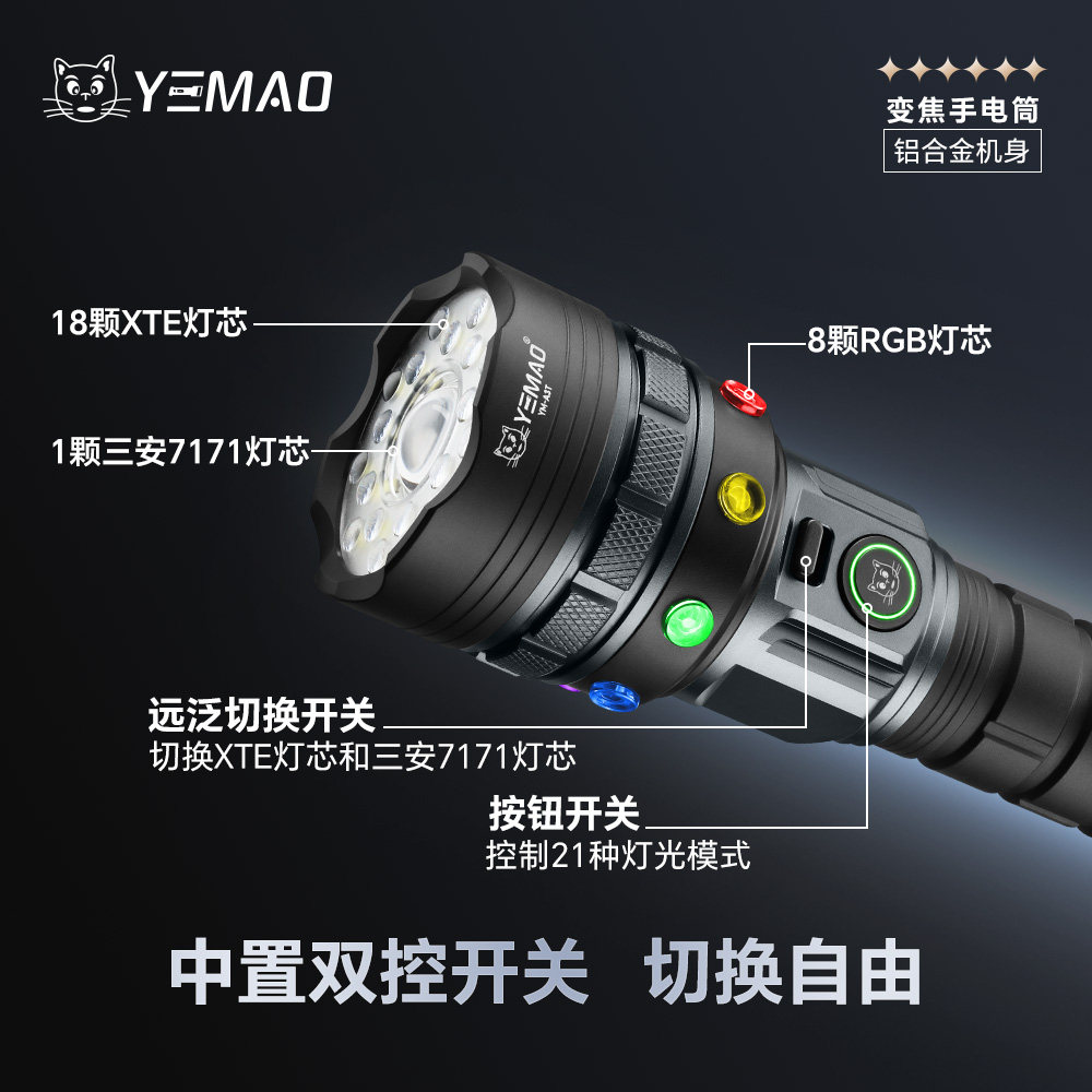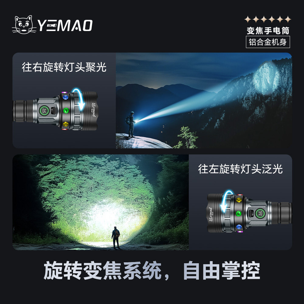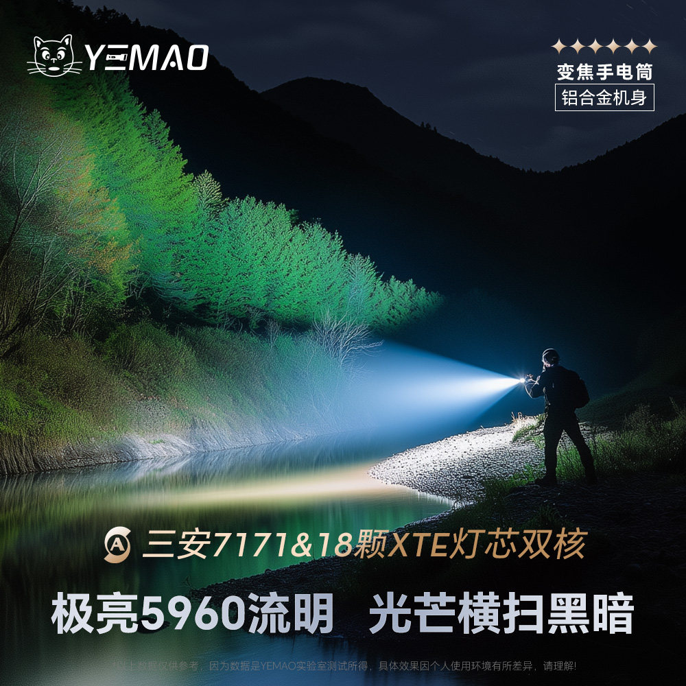 📚 夜猫A3星核5960流明双光源远泛一体可变焦铝合金户外强光高亮手电