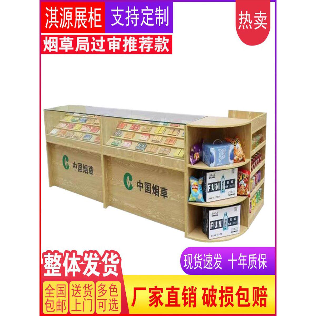📚 超市香烟柜台定制展示柜便利店烟架钢化玻璃烟柜收银一体展示柜台