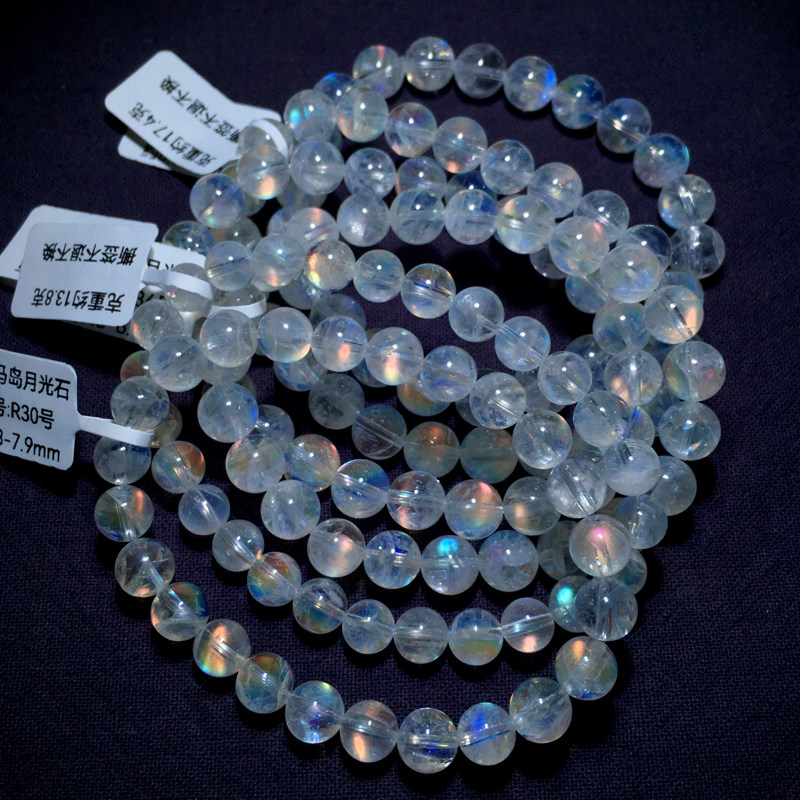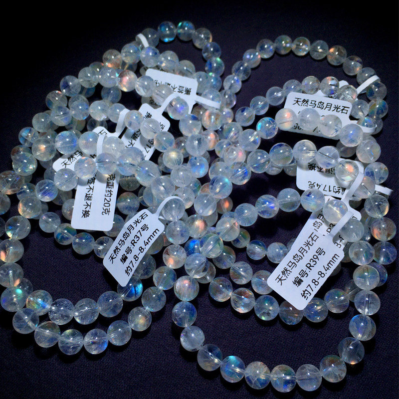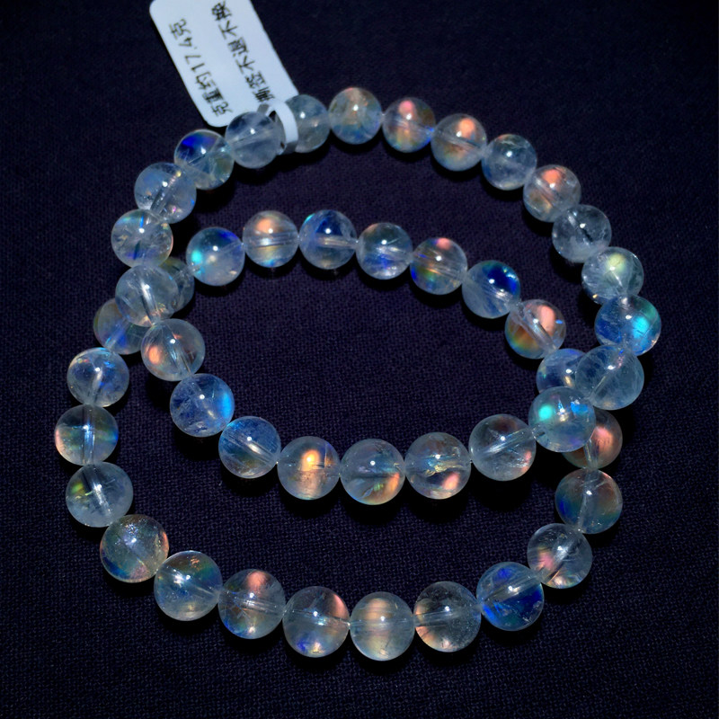 📚 天然冰种马岛月光石单圈手链彩虹光水晶手串饰品男女生送礼物情侣