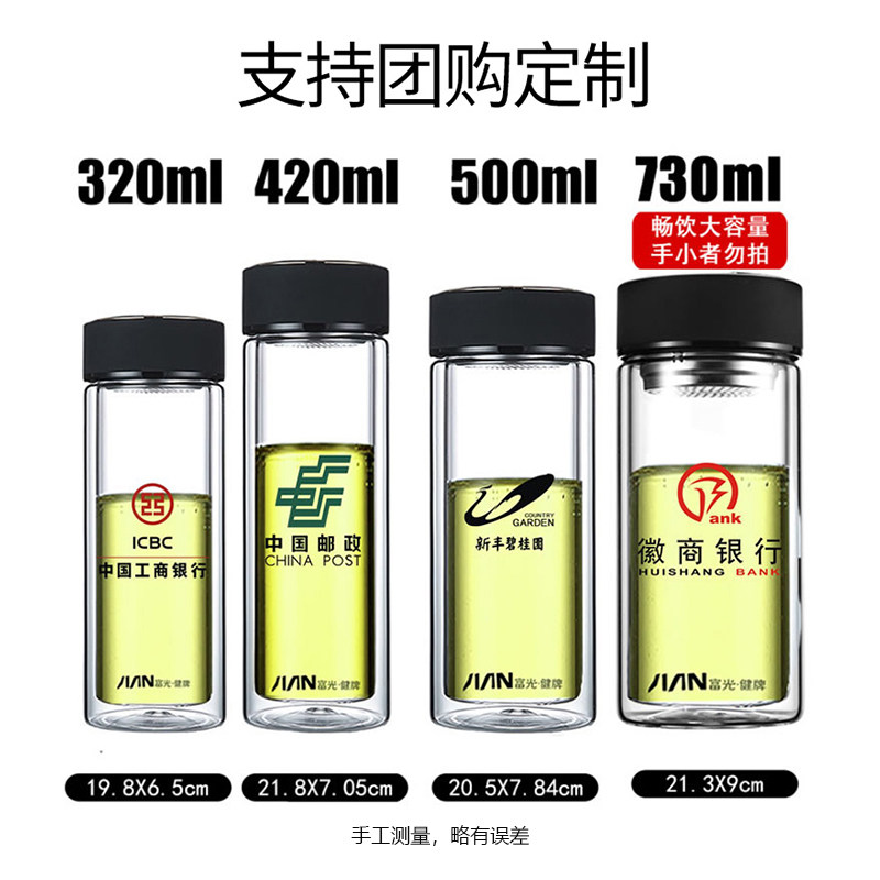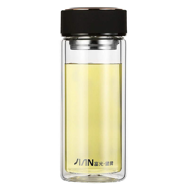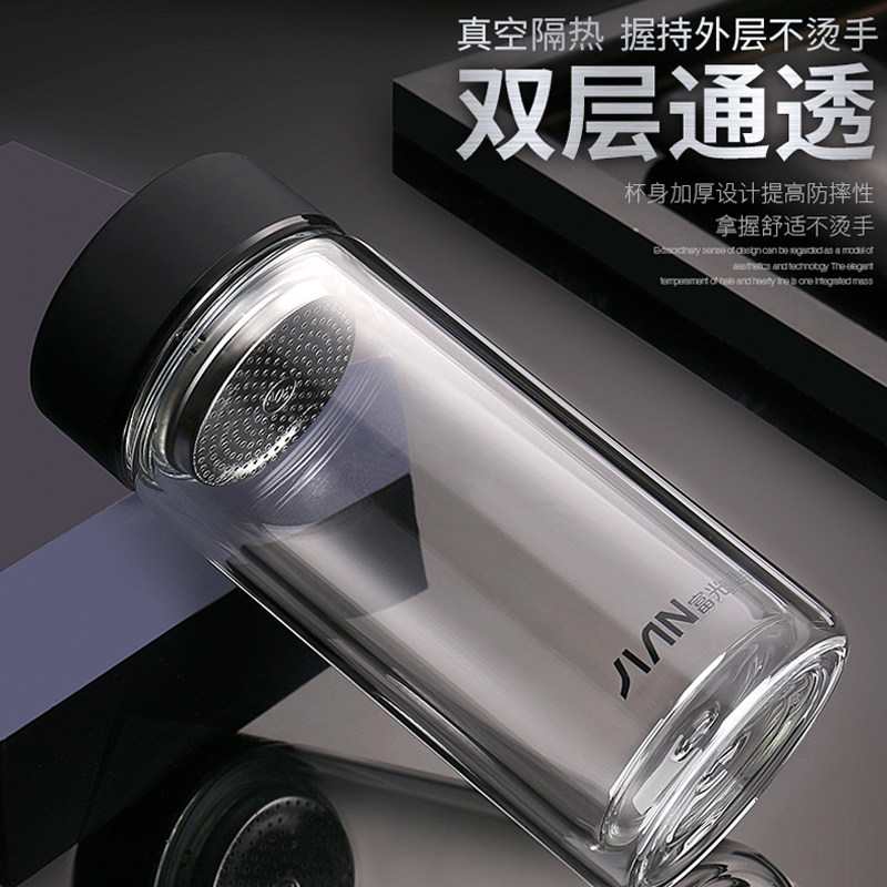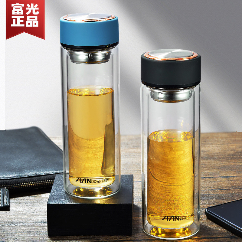 📚 富光健牌双层玻璃杯男女办公室用防烫泡茶水杯子红蓝咖啡黑500ml
