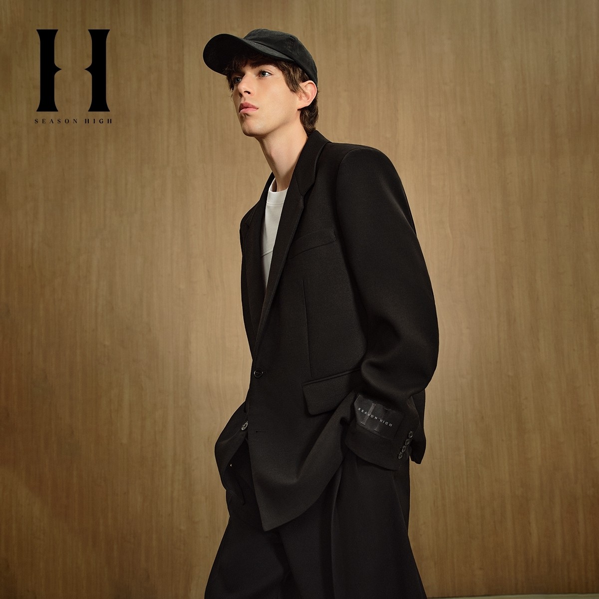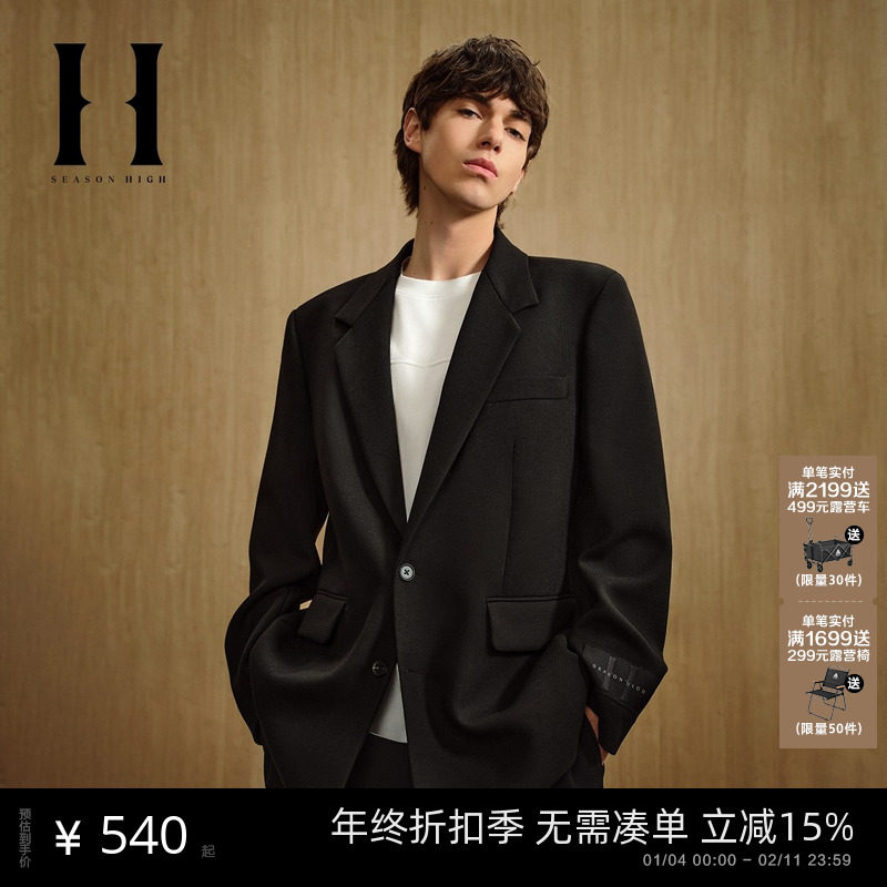 📚 SEASON HIGH24秋季新款宽松平驳领商务休闲通勤外套含羊毛西装男