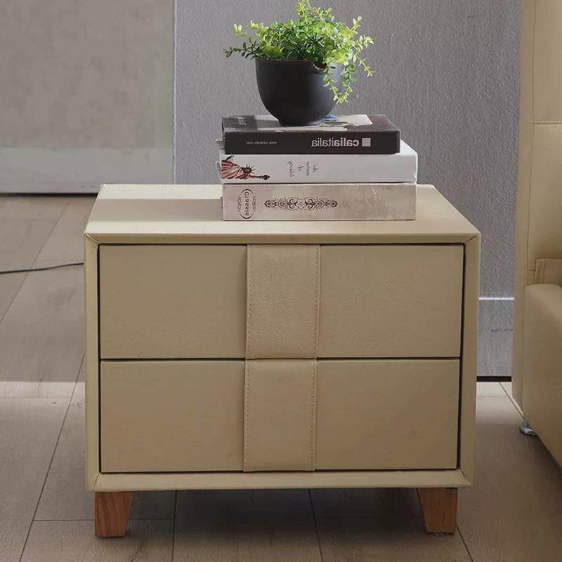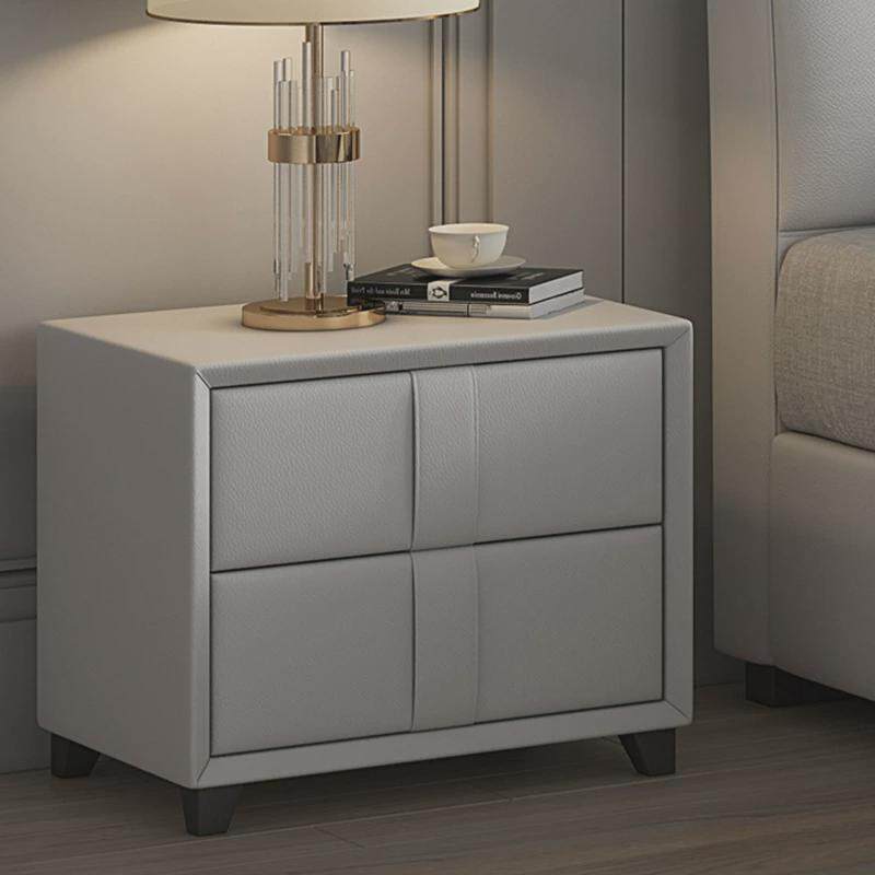 📚 简约现代轻奢实木床头柜皮艺软包抽双极简卧室床边收纳柜储物柜