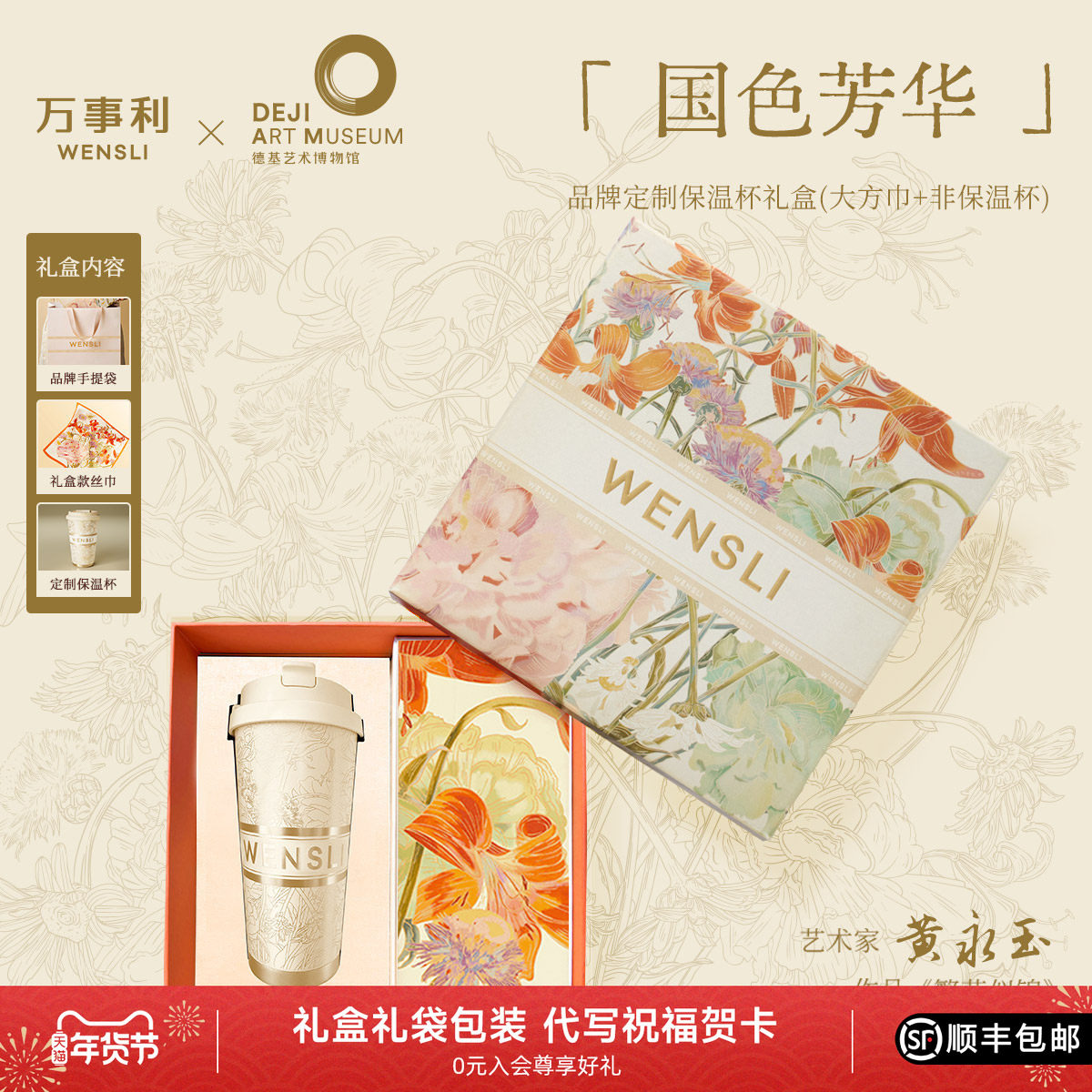 📚 万事利×德基艺术馆真丝丝巾丝杯礼盒大师黄永玉作品—国色芳华