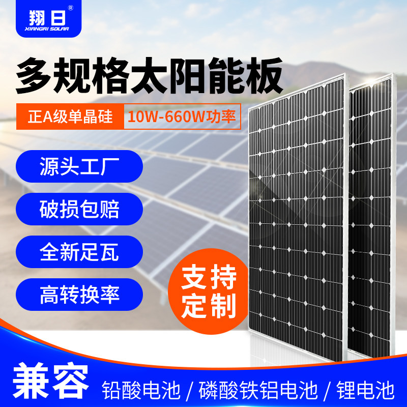 📚 多晶单晶太阳能电池板30W单晶发电板50W100W充12V电瓶锂电充电板