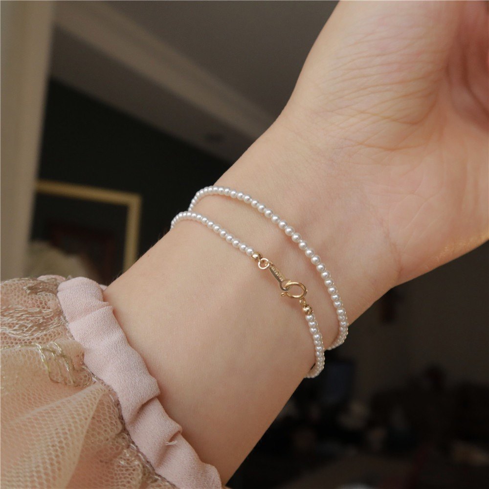 📚 稀有迷你施家珍珠2mm正圆mini小珍珠手链通体美国14k包金双层叠戴