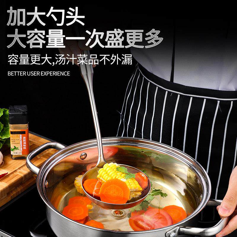 📚 汤勺家用大号盛汤304不锈钢勺子长柄舀勺粥勺稀饭勺汤瓢火锅漏勺