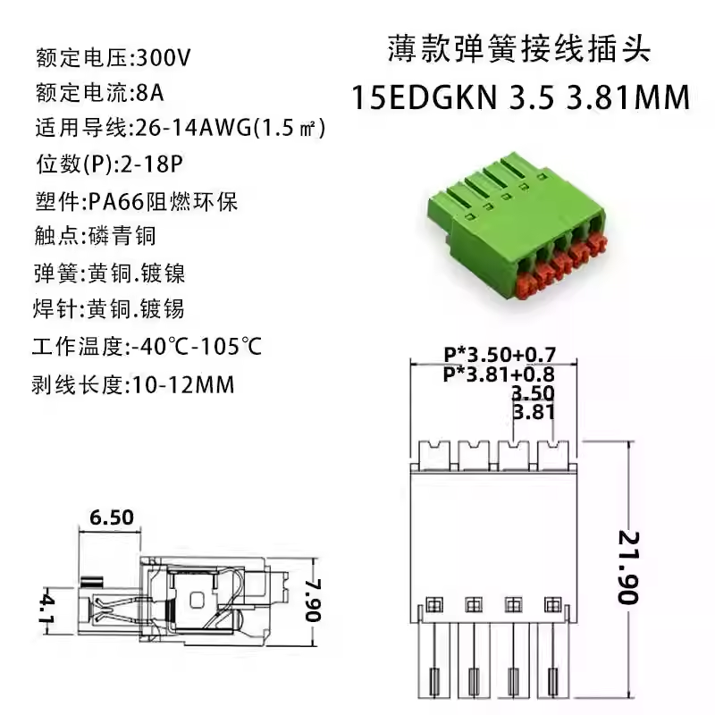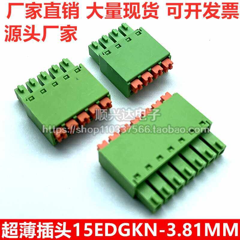 📚 15EDGKNR3.81mm超薄款3.81弹簧按压免焊接线插头座EDGKN绿色端子