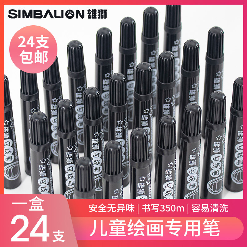 📚 雄狮水彩勾线笔幼儿园儿童美术专用小学生黑色双头油性奇异笔红绘画彩色记号笔防水防油不掉色细速干马克笔