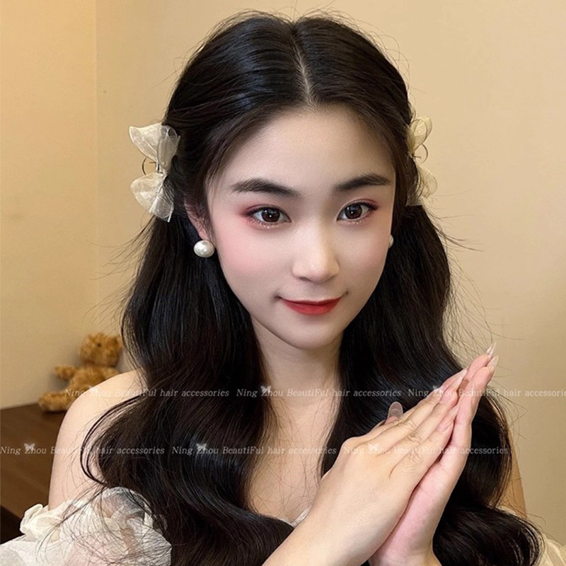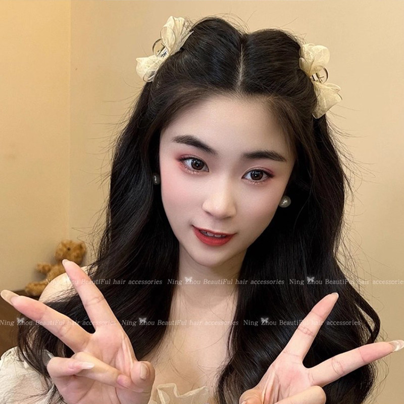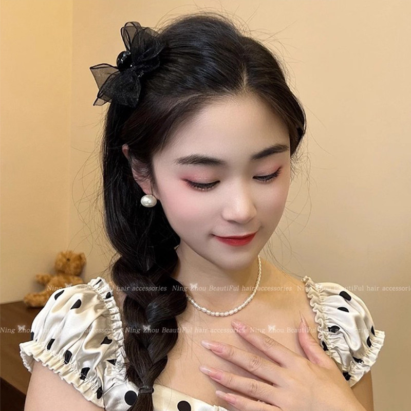 📚 网纱黑色蝴蝶结发夹头饰公主头小抓夹碎发侧边刘海夹子前额发卡女