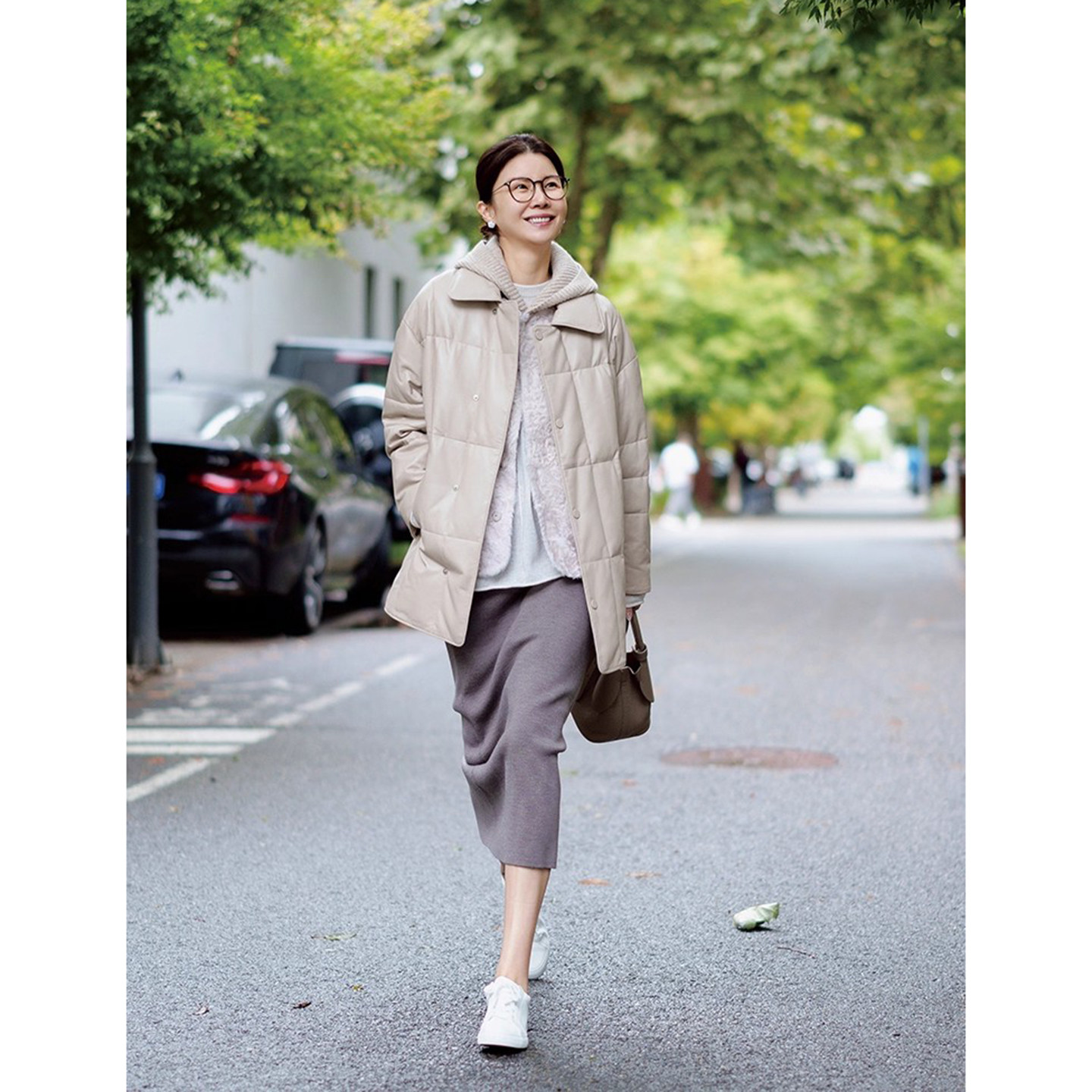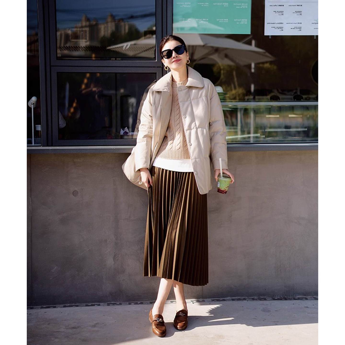 📚 极简风廓型翻领轻暖白鹅绒羽绒服女款冬装宽松中长款羊皮大衣外套