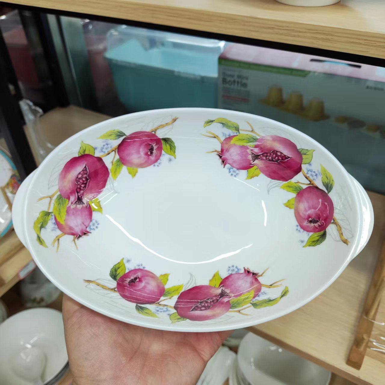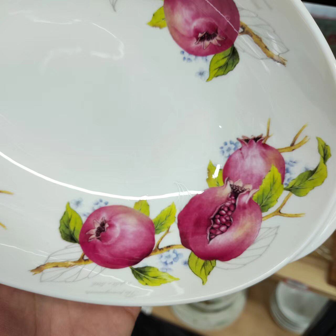 57¥ MF278 tSMCUoGc0y4¥ https://m.tb.cn/h.7Be7pVC 韩国石榴花大菜碗椭圆盘子深盘汤碗炖碗果盘拼盘沙拉碗骨瓷家用 --------------------- 【原售价】66元 【现售价】56.1元。