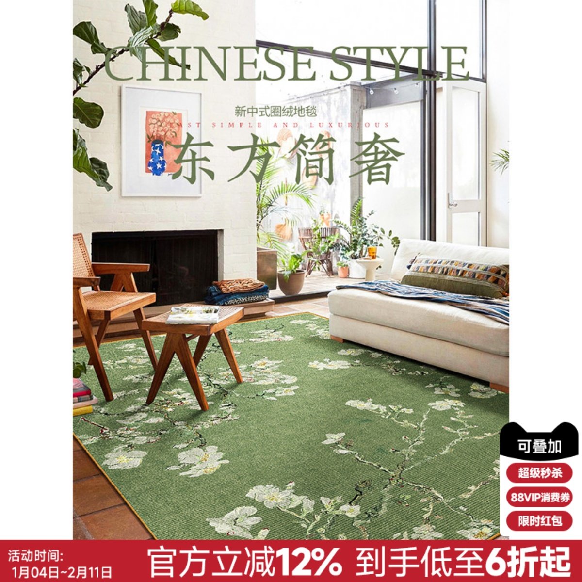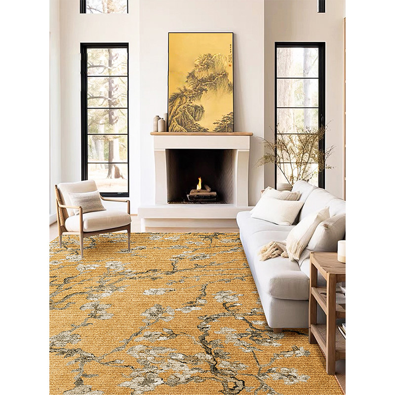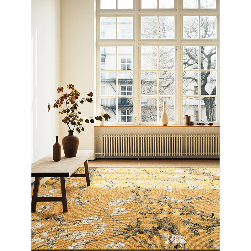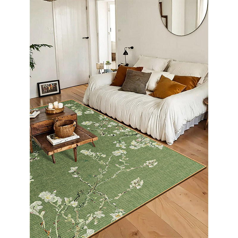 📚 新中式客厅沙发茶几地毯中古风绿色杏花卧室梳妆台地垫轻奢高级感
