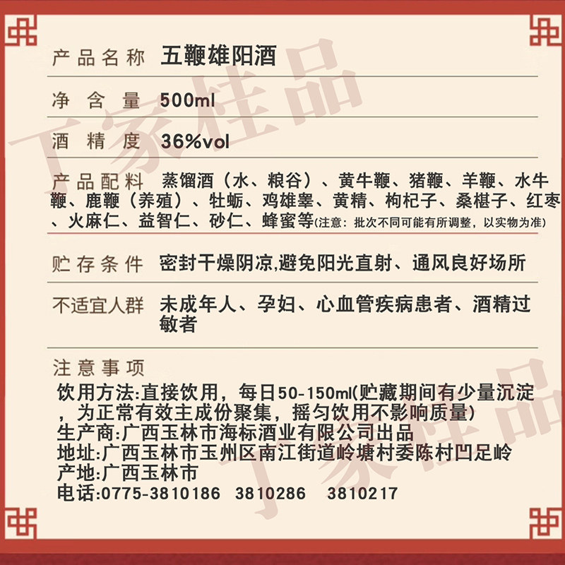 📚 广西特产土山堂五鞭雄阳酒36度露酒500ml*1-6瓶送人手信自饮年货
