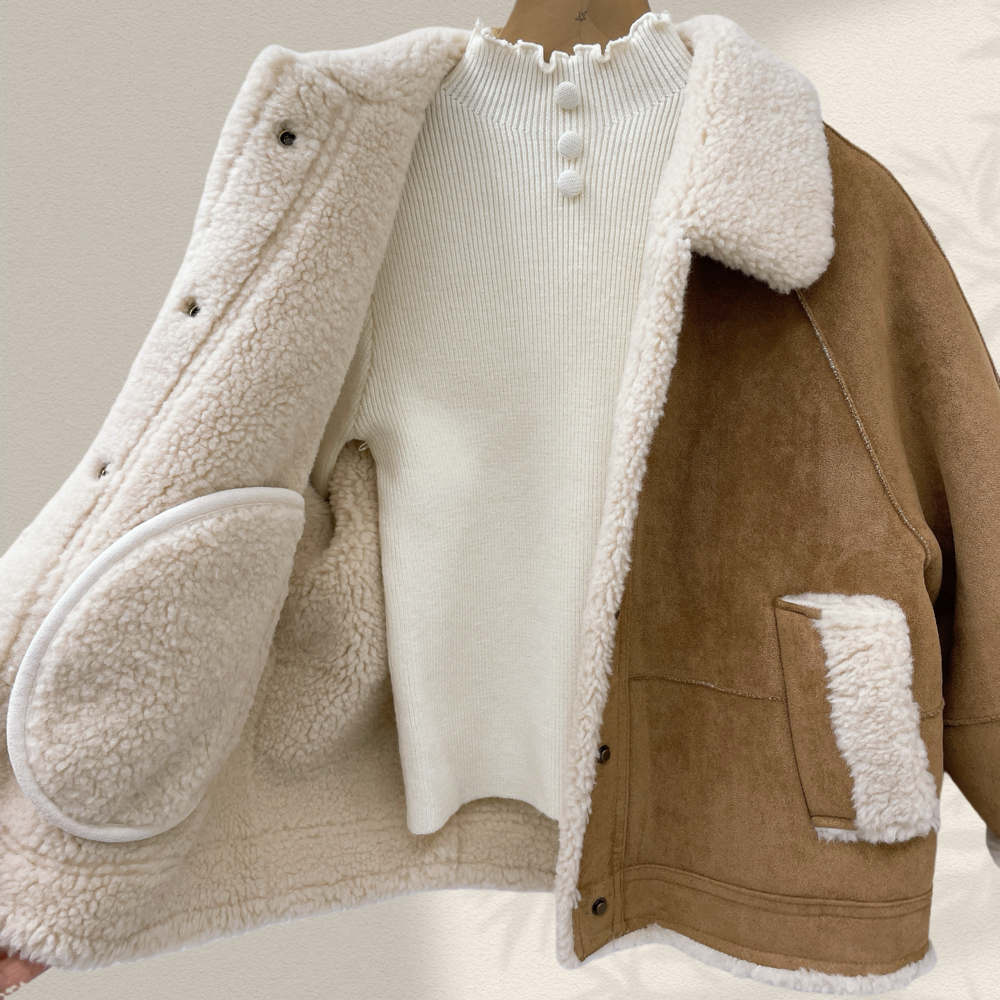 📚 WOOSO童装2025冬款女童韩系短款保暖皮毛一体绒外套保暖上衣55350
