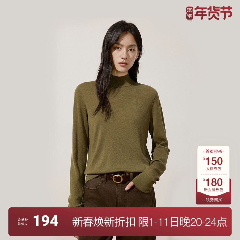 📚 OCHIRLY欧时力 澳大利亚100%美丽诺羊毛半高领毛衣女2024秋冬新品