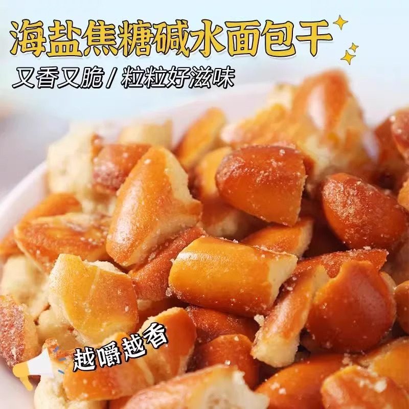 🍪🍵🥐🍫🍵🍑网红爆款!海盐碱水干脆面包丁,解馋休闲小零食,券后仅11.8元!