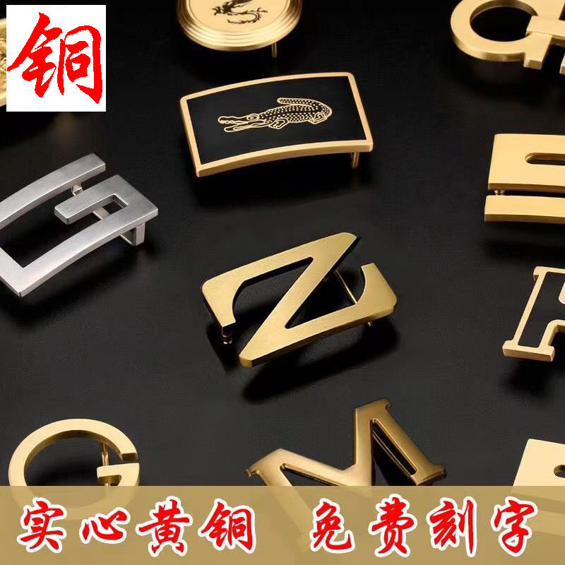 📚 实心黄铜皮带扣头不生锈不掉色高档平滑扣男腰带实心黄铜字母挂扣