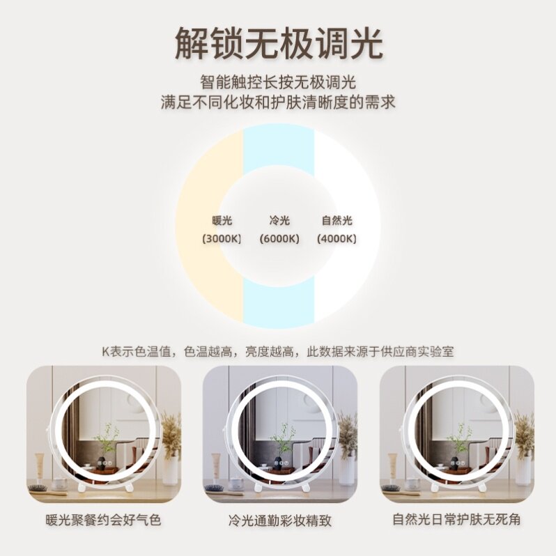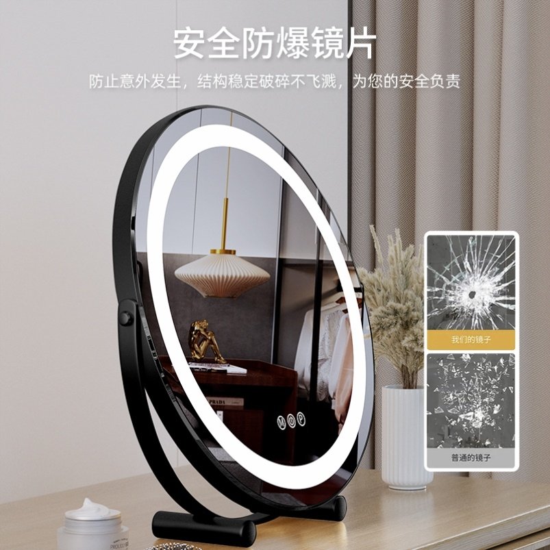 📚 化妆镜led灯桌面台式智能家用梳妆镜旋转欧式美妆镜卧室补光镜子