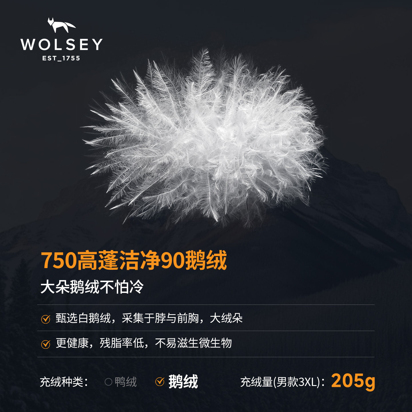 📚 【1911创变者中长款】Wolsey保暖鹅绒服防风防水男女款羽绒衣外套