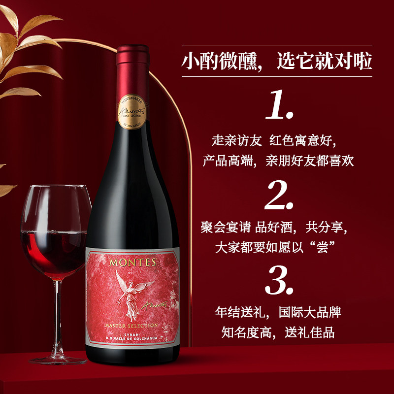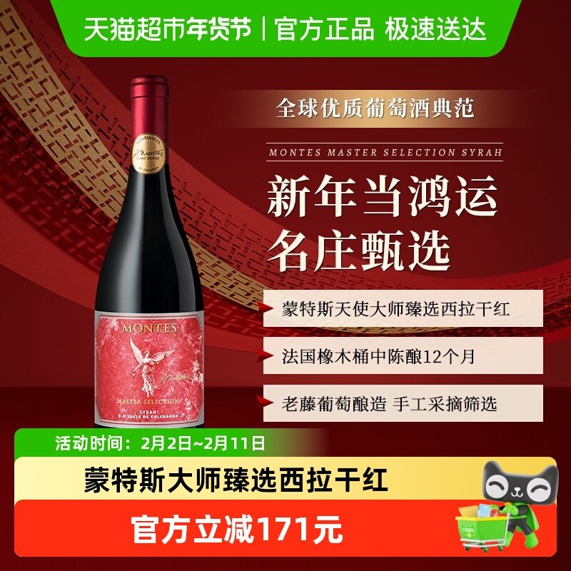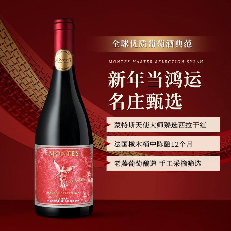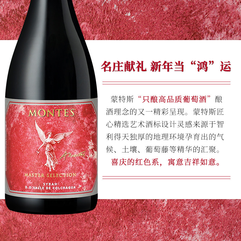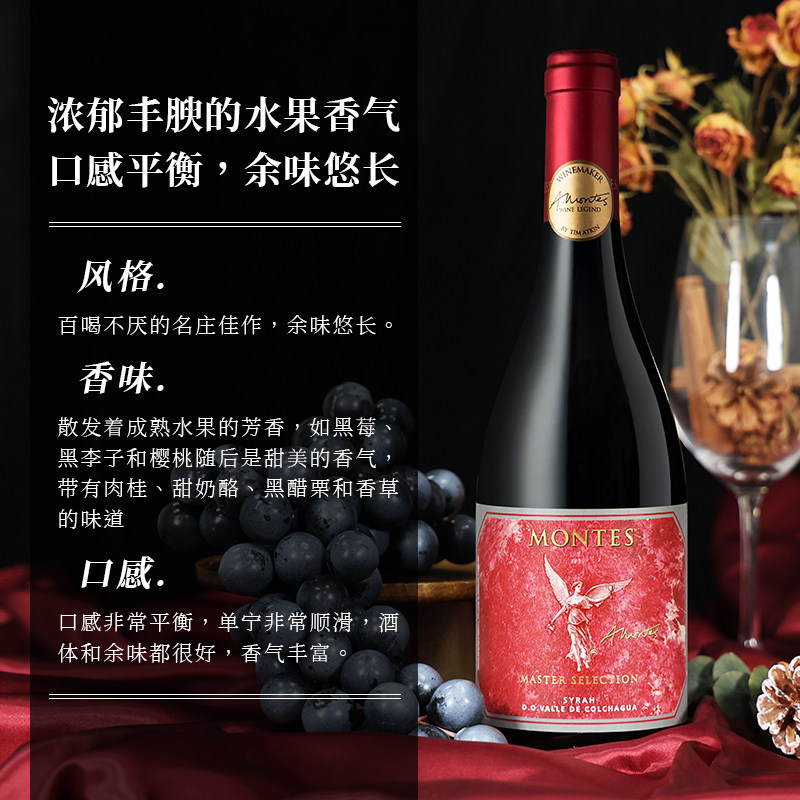 📚 智利原瓶进口montes蒙特斯天使大师臻选西拉干红葡萄酒750ml*1瓶