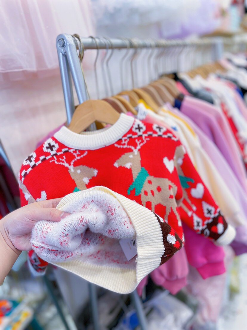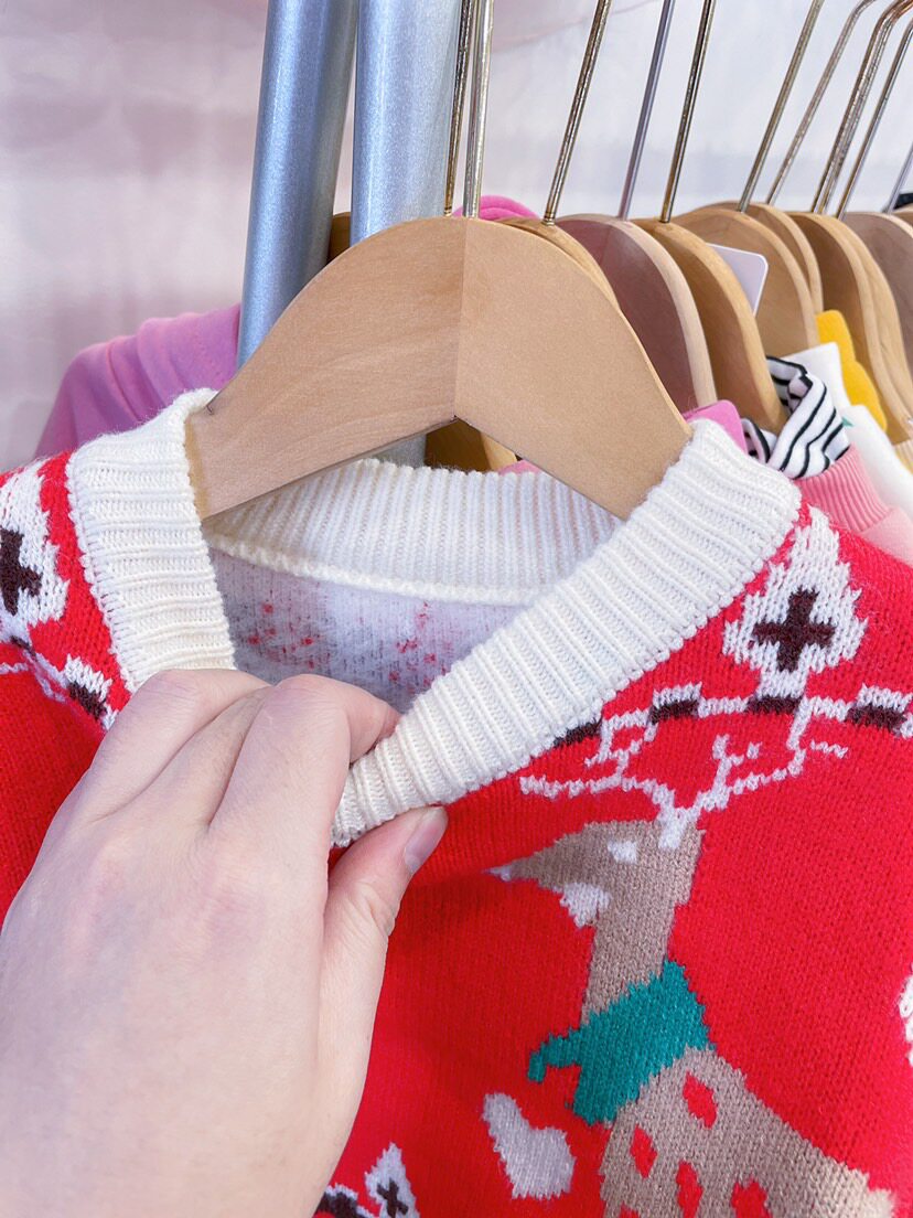 📚 女童红色毛衣加绒加厚冬季小女孩针织衫套头儿童圣诞过年衣服小童