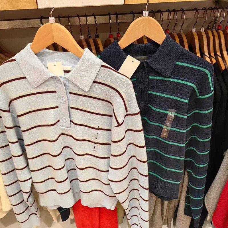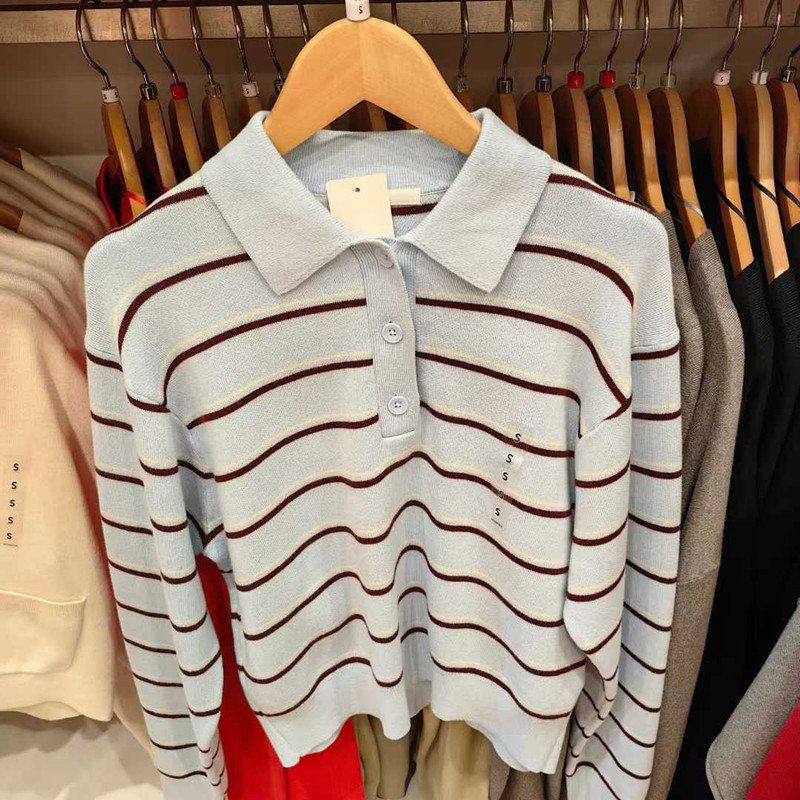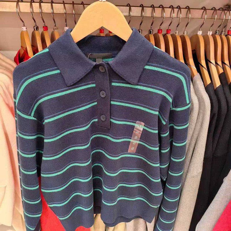 📚 女装26新款柔滑棉质POLO领条纹针织衫/套头毛衣毛衫482971/484503