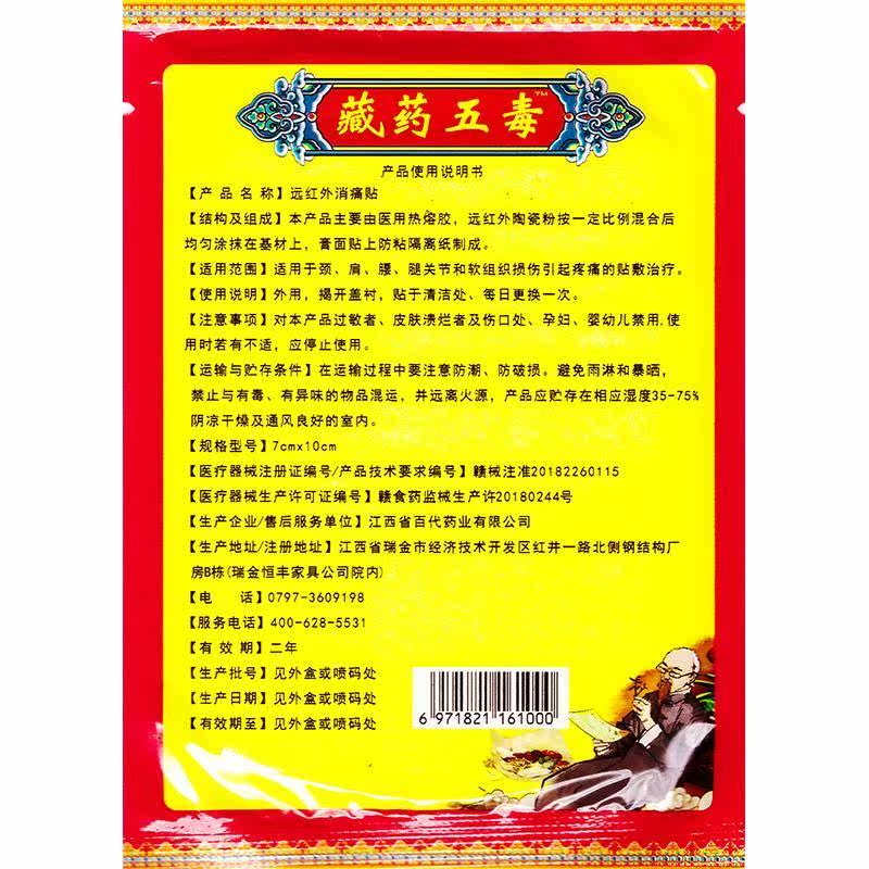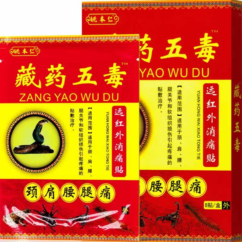 📚 姚本仁藏药五毒贴远红外筋骨痛贴8贴/盒自发热黑膏药贴肩周膝关节