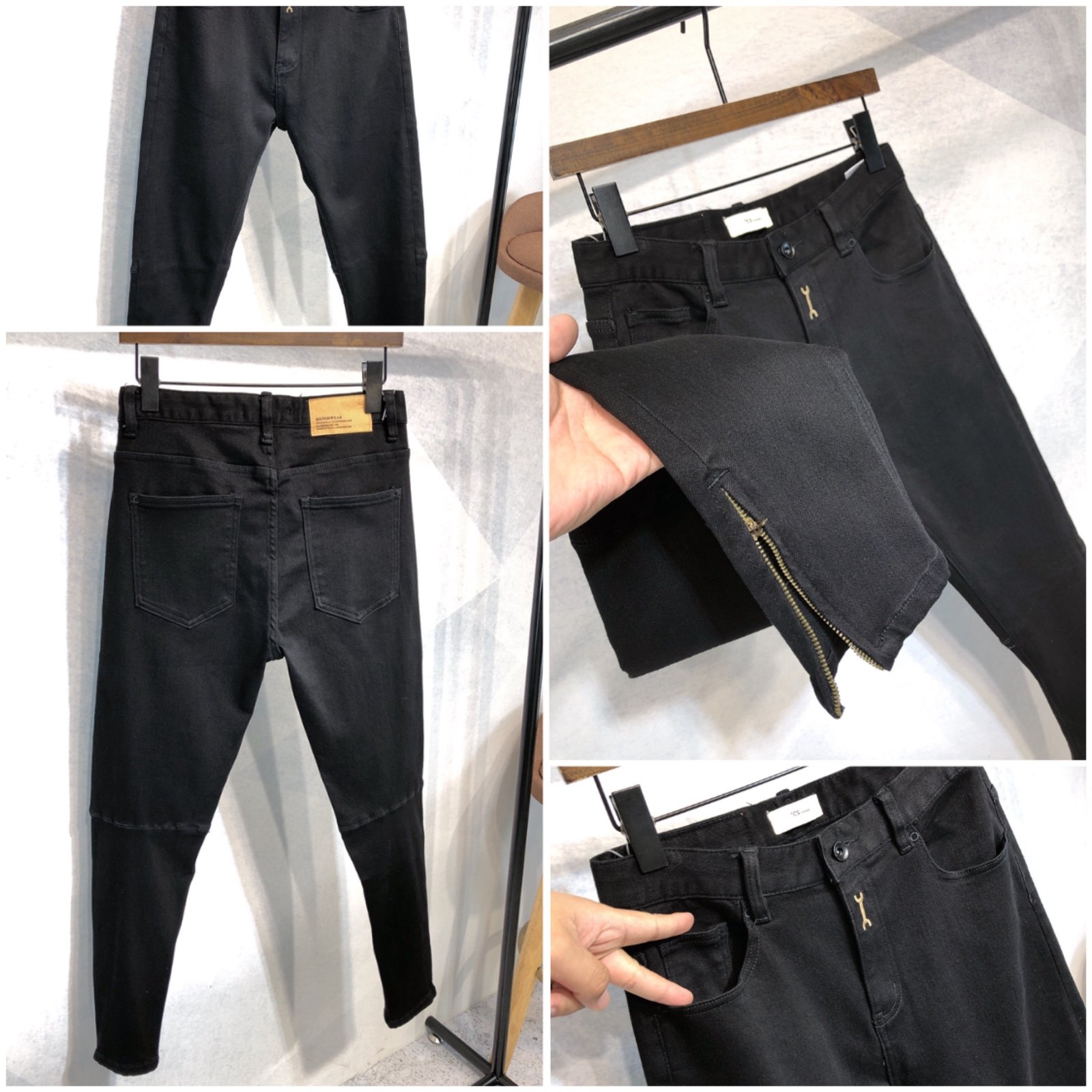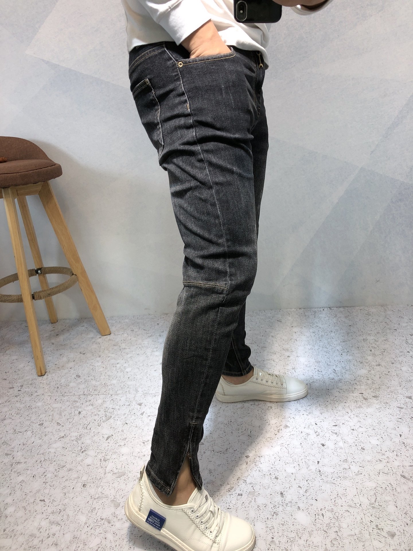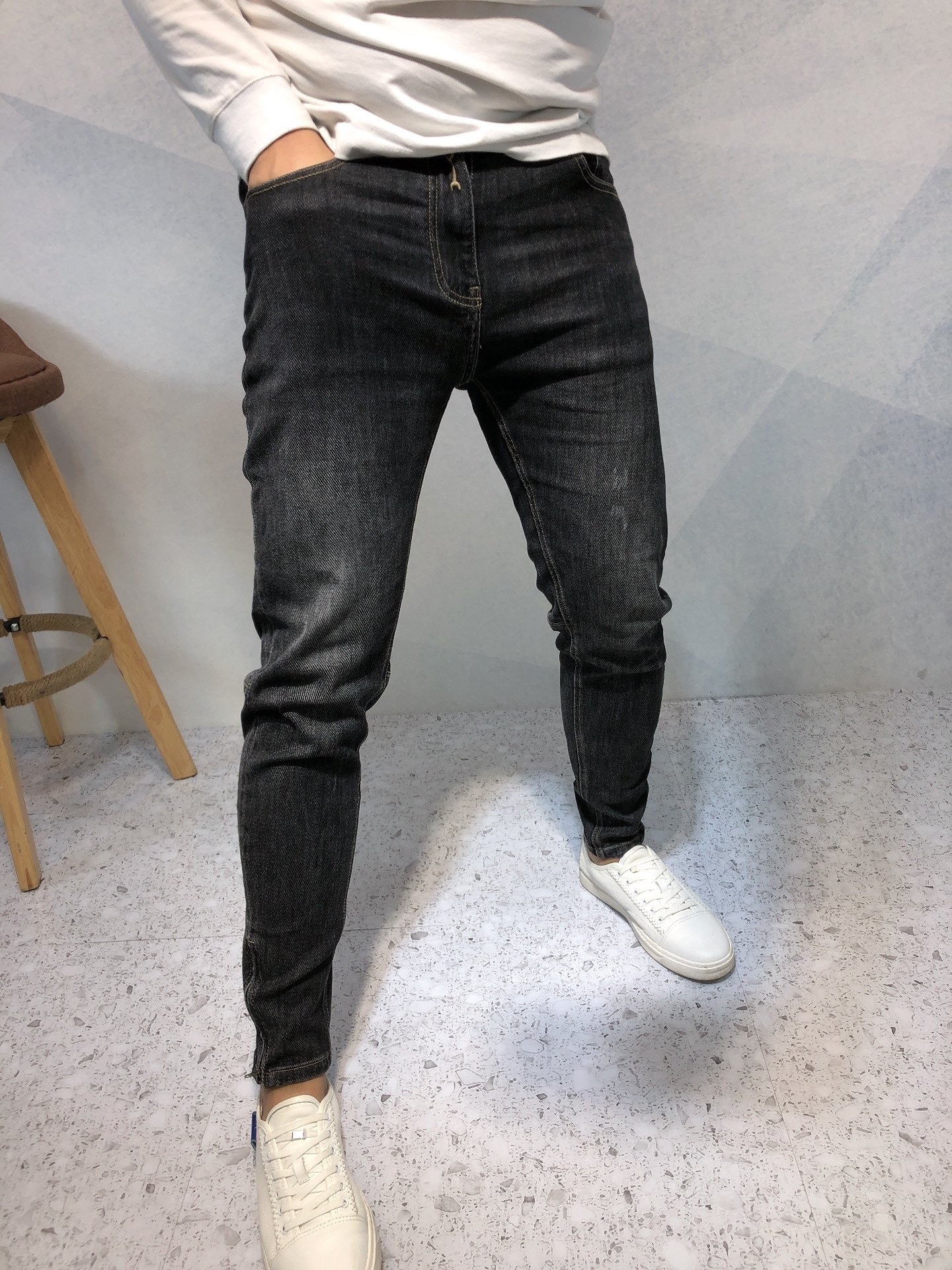 📚 秋冬新款黑色牛仔裤男弹力灰色修身小脚显瘦裤脚拉链青年百搭裤子
