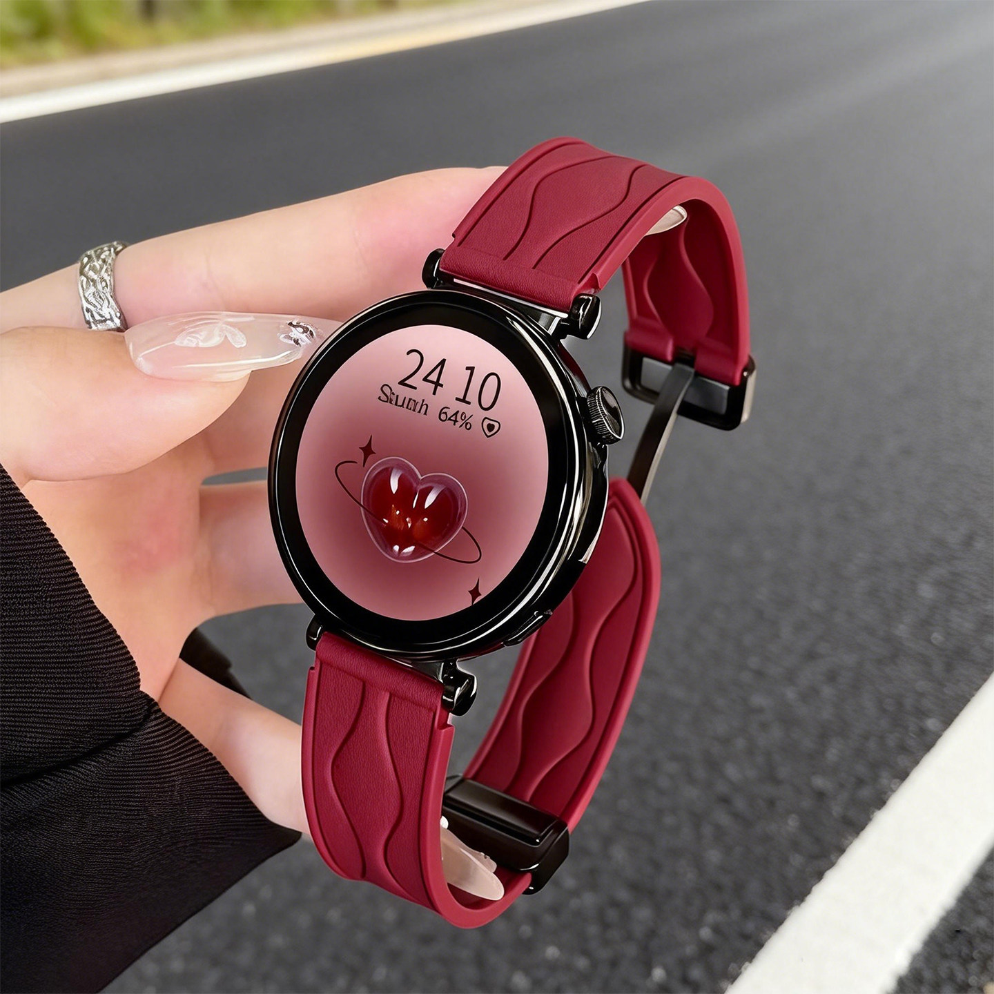 📚 适用华为gt6手表表带watchgt5手表带新款皮纹硅胶磁吸gt4智能运动腕带5pro秋冬女款watch5高级感新年红色表链
