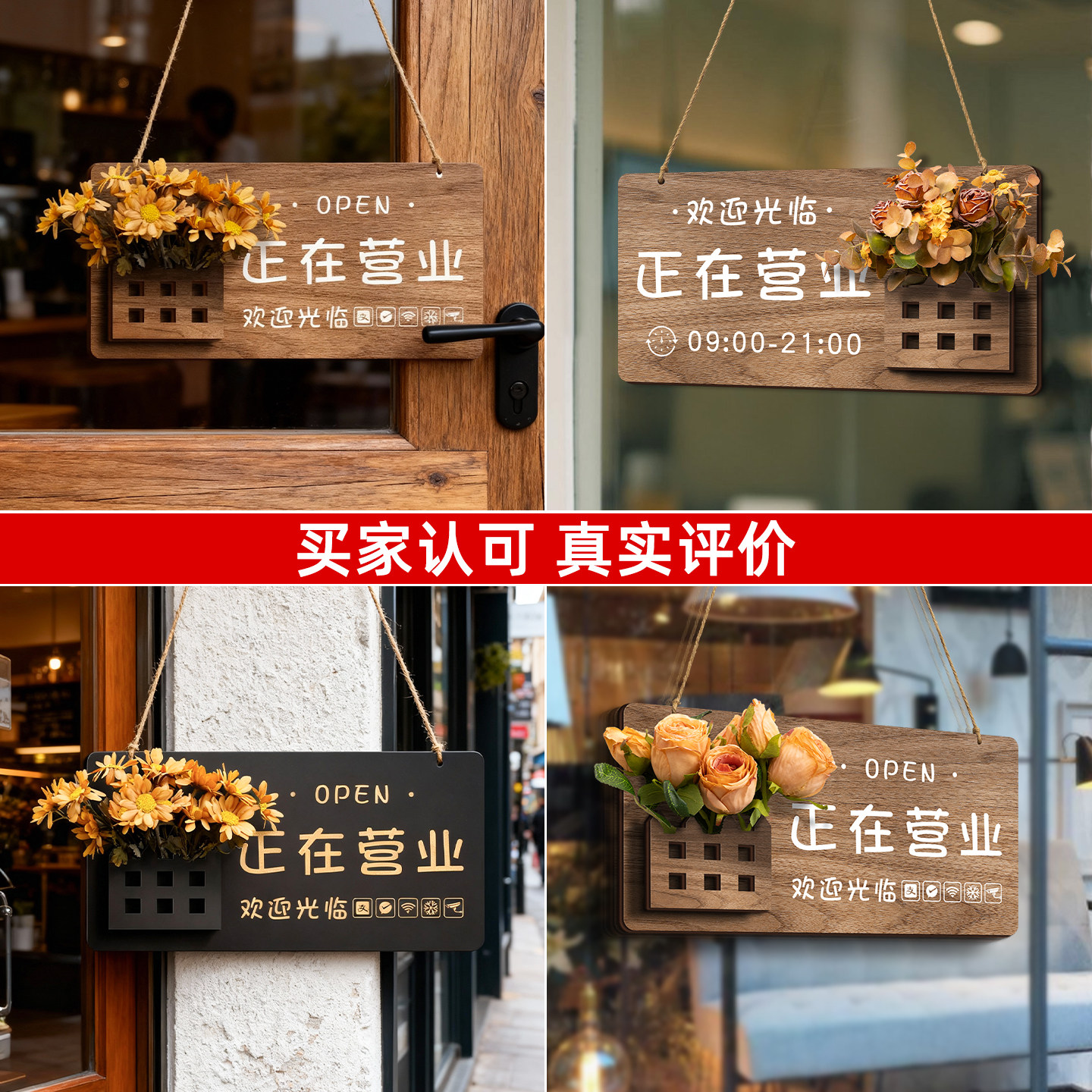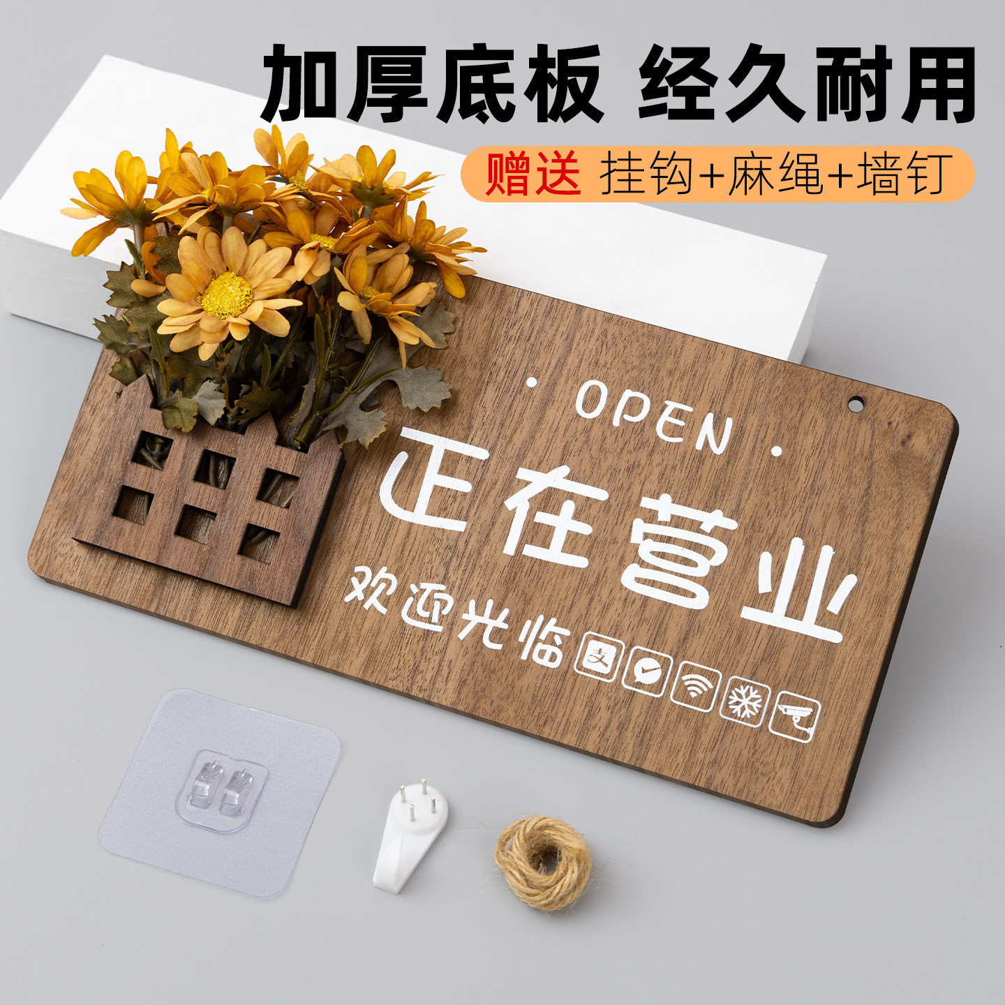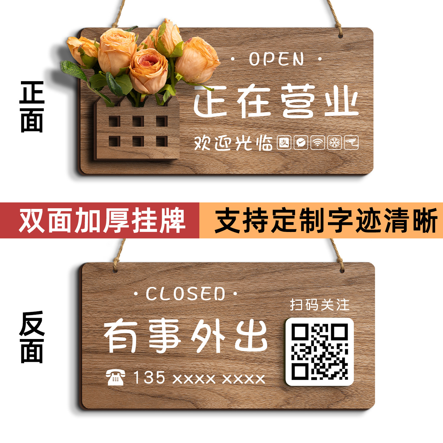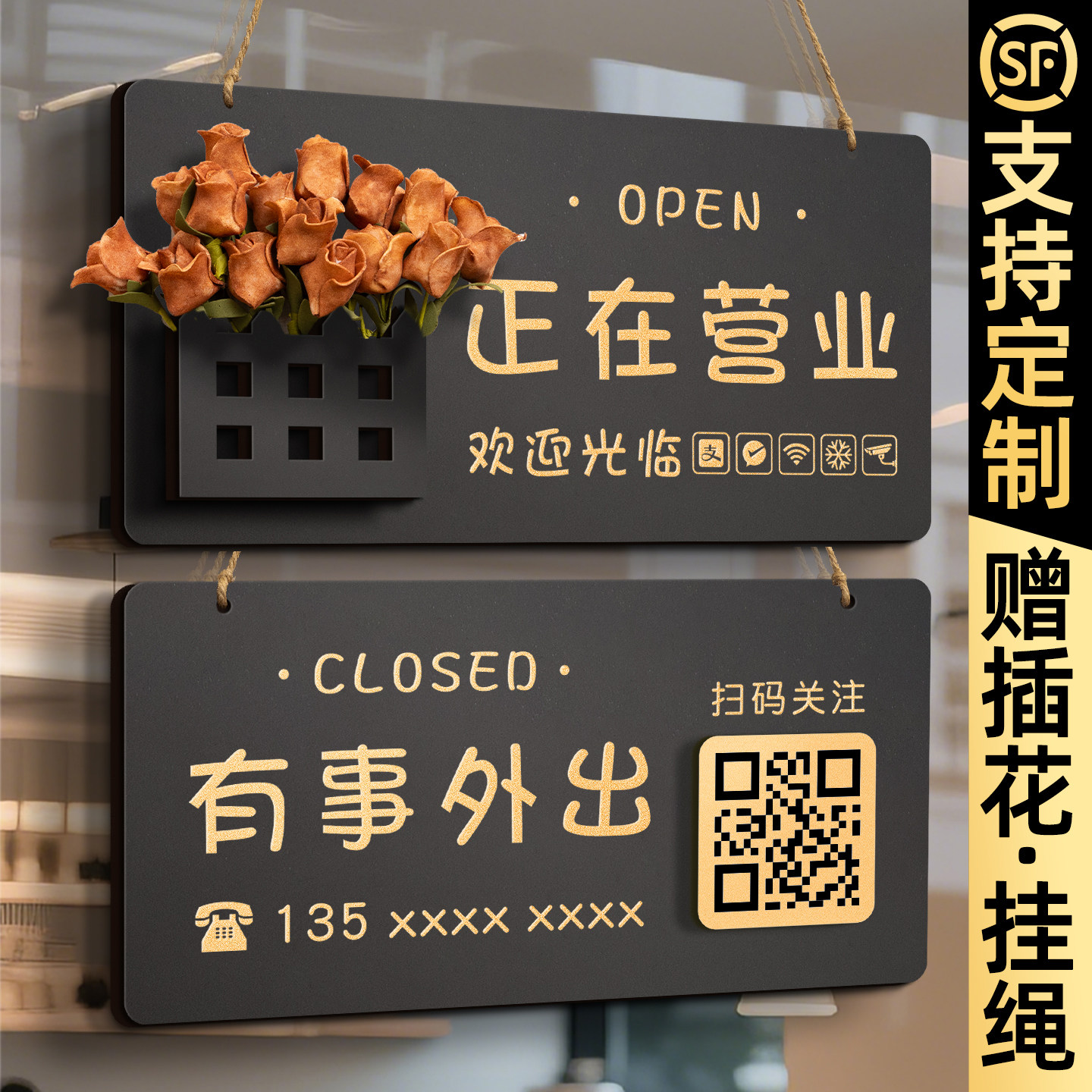📚 正在营业中挂牌店主有事外出标识牌门店门口装饰吸引人花店欢迎光临指示高级轻奢风二维码正常休息时间告示贴